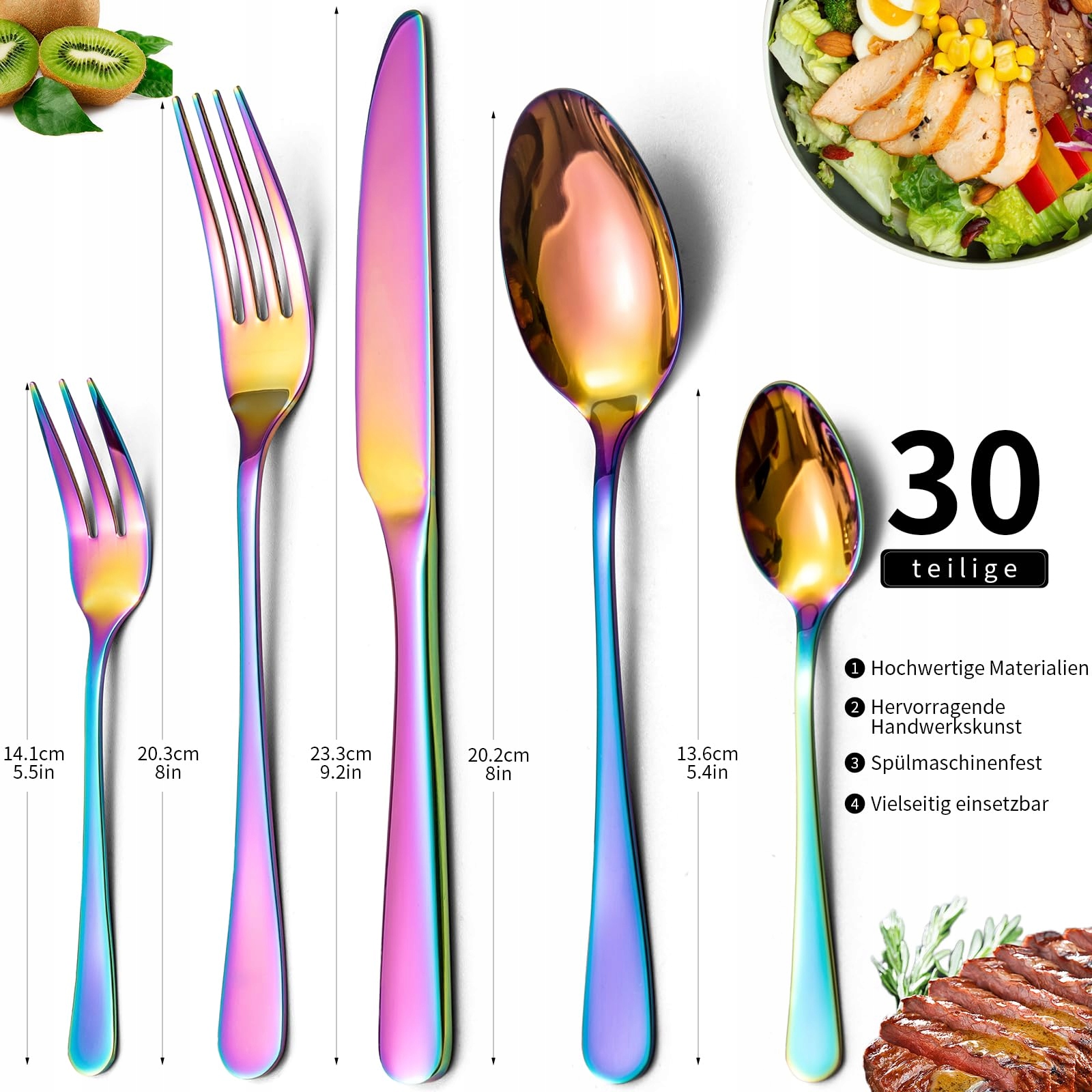 LAZAHOME Zestaw Sztućców Stal Nierdzewna 30 Części Tęczowe Dla 6 Osób