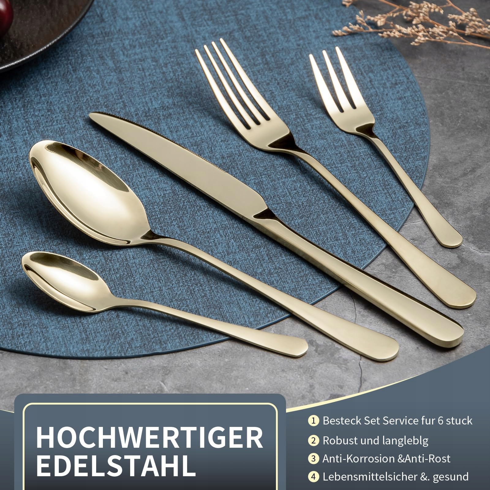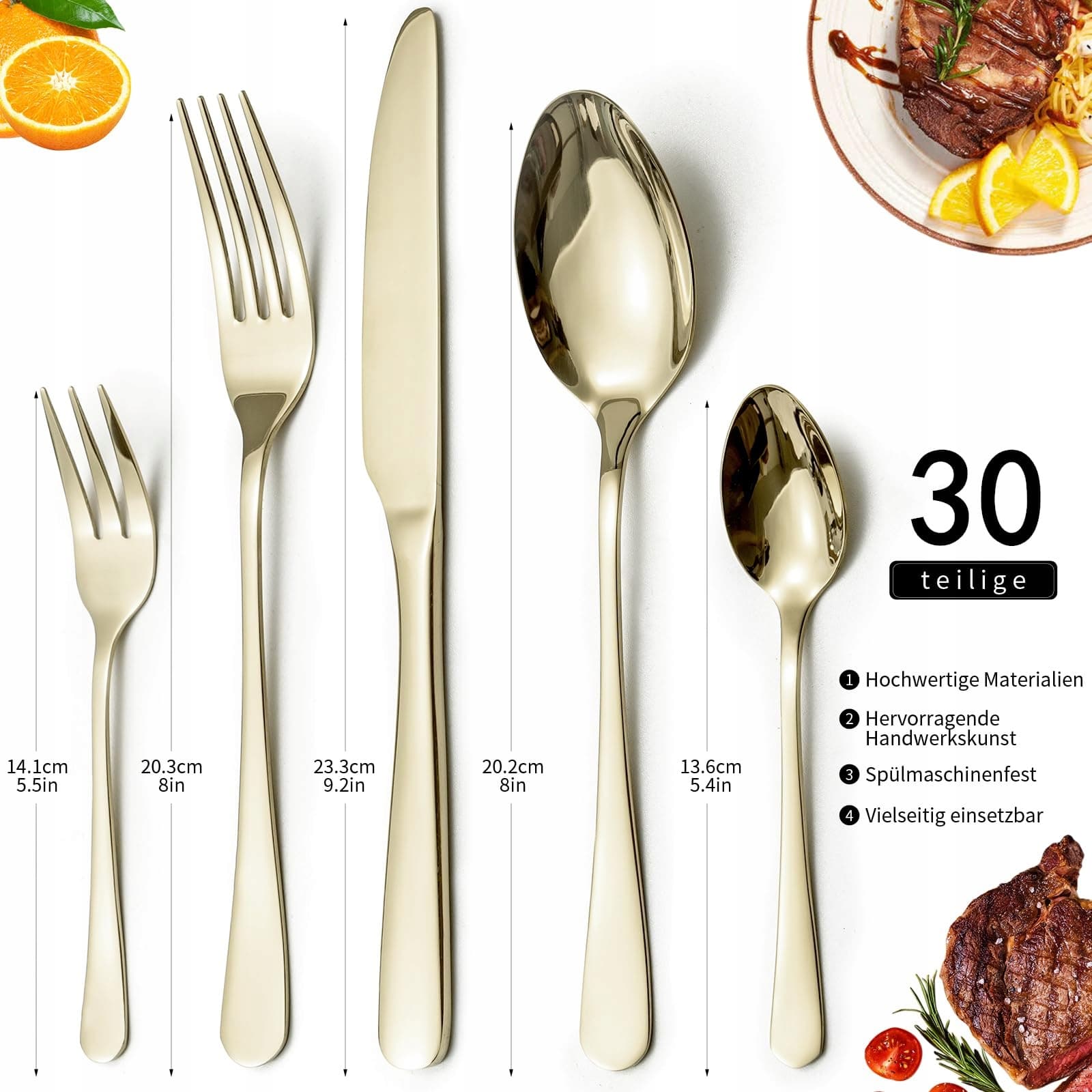 LAZAHOME Zestaw Sztućców Stal Nierdzewna 30 Elementów Dla 6 Osób Złoty