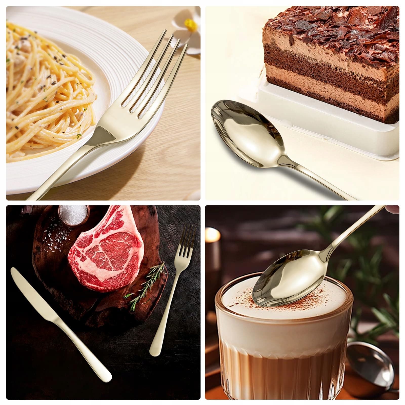 【Prosty i elegancki wygląd】Brak dodatkowej dekoracji, łatwy do czyszczenia. Piękny zestaw sztućców jest zaprojektowany na długą żywotność, nowoczesny i minimalistyczny design doskonale uzupełnia Twoje istniejące sztućce stołowe.