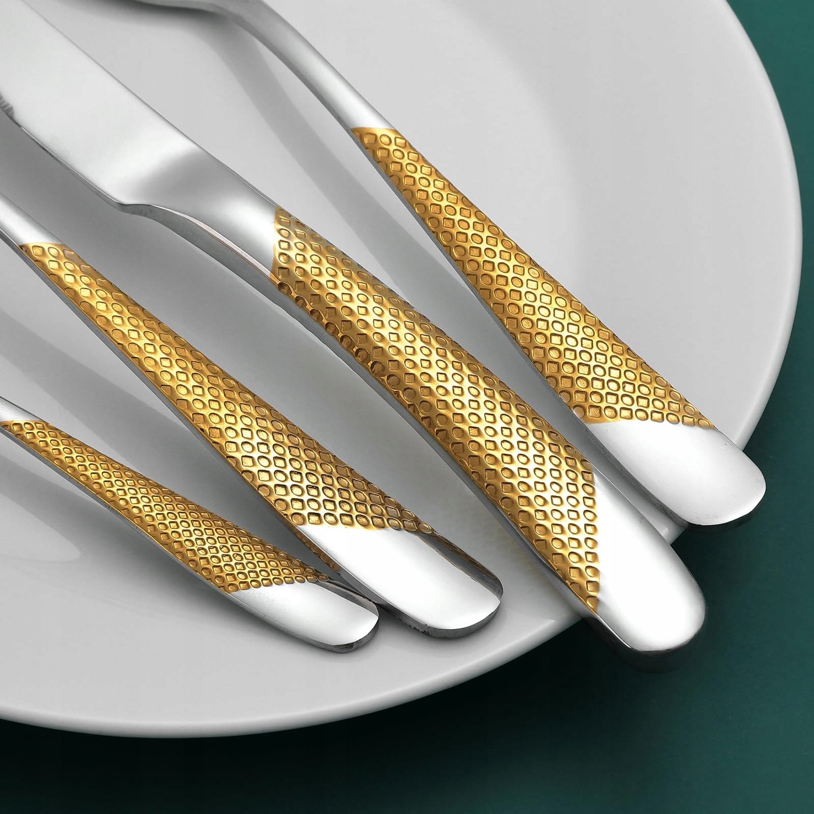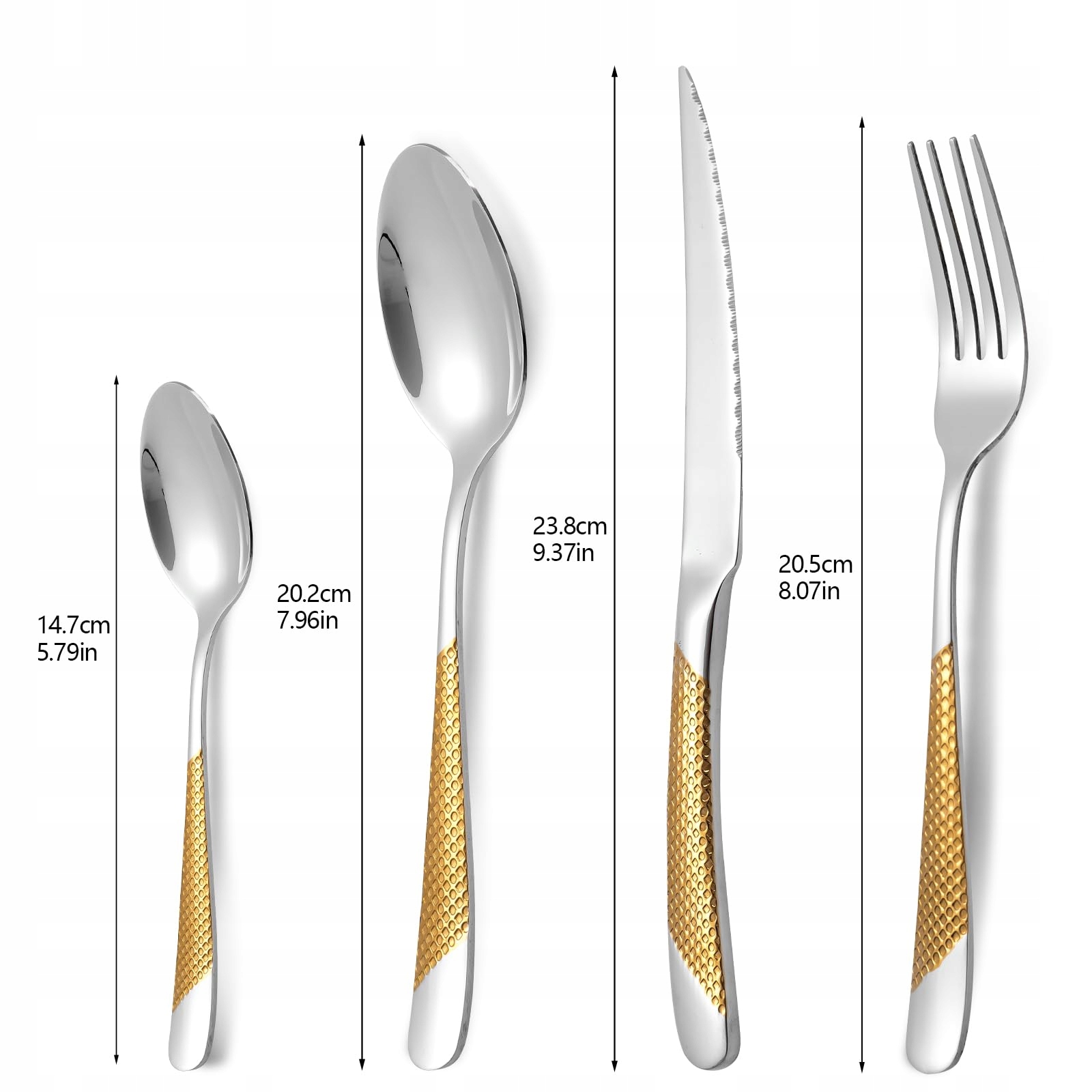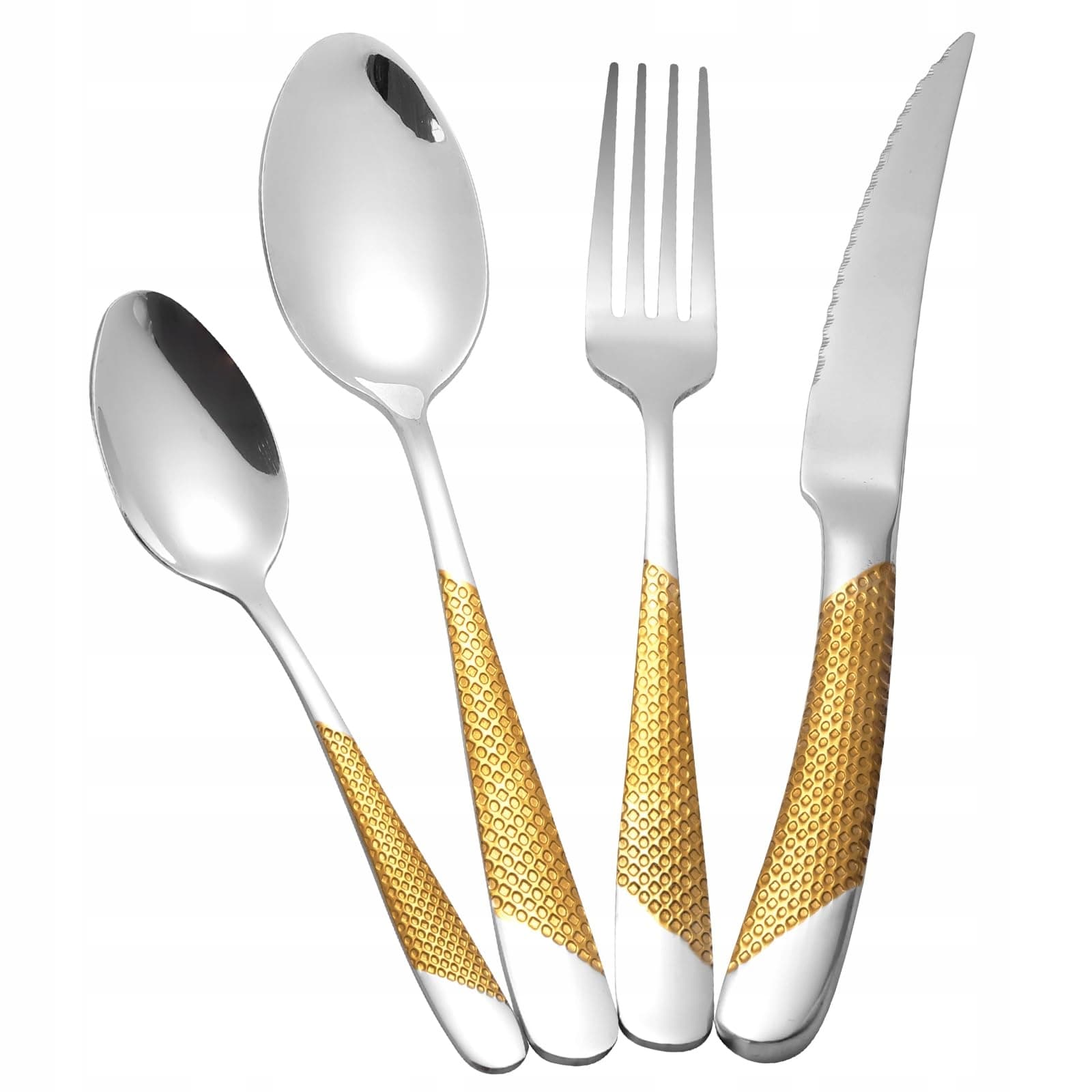 24-częściowy młotkowany zestaw sztućców, sztućce ze stali nierdzewnej 18/10, zestaw sztućców dla 6 osób, zestaw nóż-widelec-łyżka (złoto srebro)