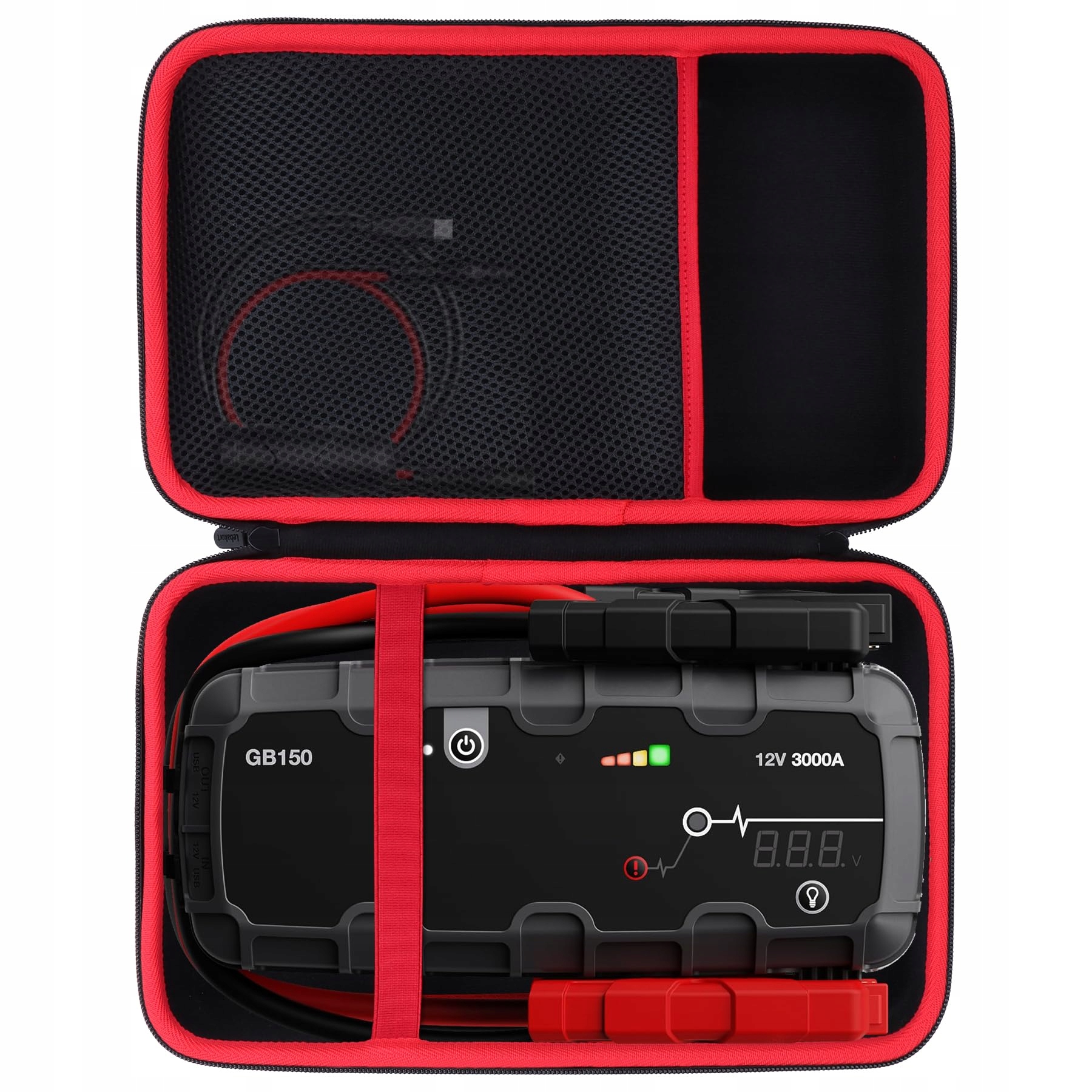 Prosty i praktyczny design: Na spodzie etui znajduje się elastyczny pasek, który zapobiega przesuwaniu się powerbanku podczas transportu, zapewniając niezawodną ochronę. Na górze etui znajduje się siatkowa kieszeń, która oferuje wystarczająco dużo miejsca na akcesoria, takie jak kable do ładowania. Dzięki temu niezbędne akcesoria do Boost X GBX155 / Boost Pro GB150 UltraSafe Starthilfe Powerbank pozostają uporządkowane i są łatwo dostępne w razie potrzeby