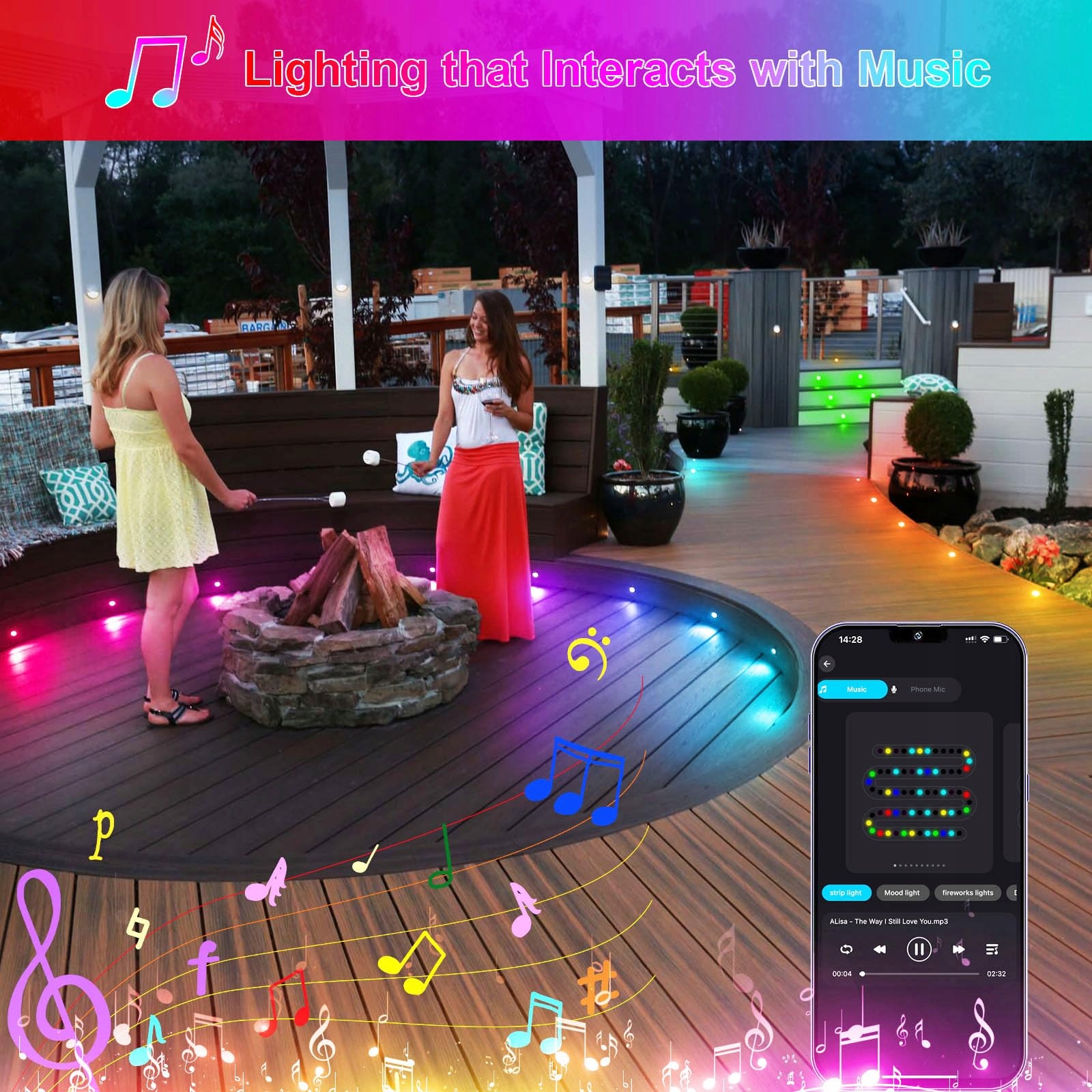 [Aplikacja (Magic Home)] Synchronizacja z muzyką] Inteligentna lampa sterowana przez WIFI, aplikacja zawiera 100 wbudowanych trybów DIY do wyboru, możesz także dostosować tryb DIY. Wbudowany wysoce czuły mikrofon, LED lampy podłogowe mogą „słyszeć” muzykę / rytm mowy i automatycznie tańczyć do dźwięków otoczenia. Idealne światła synchronizujące się z muzyką, ciesz się każdym uderzeniem w pełni.