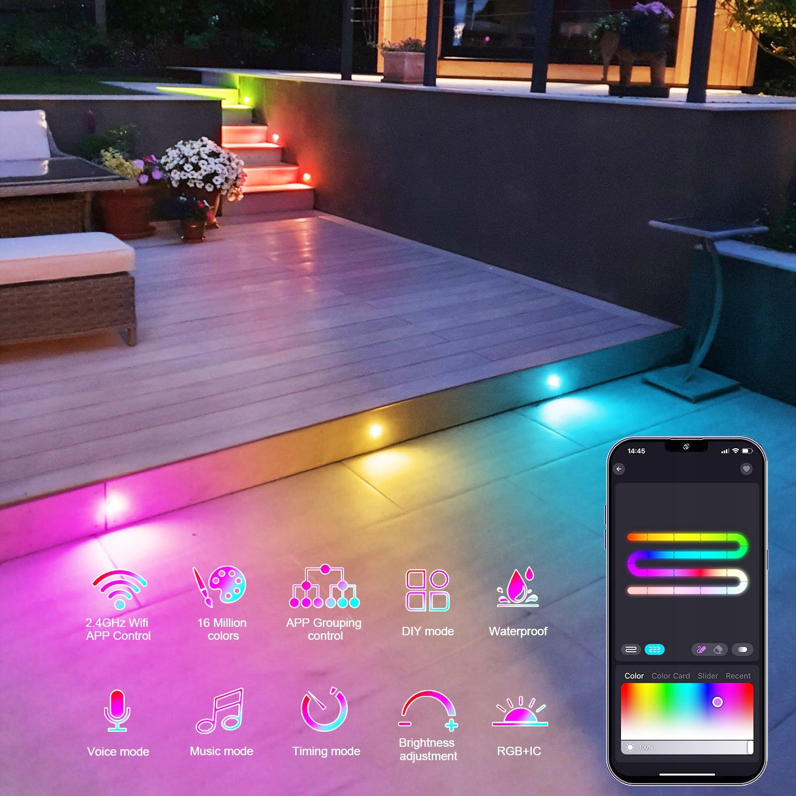 [Wodoodporność IP67] Lampa, zasilacz i kontroler są wszystkie wodoodporne zgodnie z normą IP67, możesz zainstalować lampę na zewnątrz. Zużycie energii 0,5W, wystarczająco jasne, kąt świecenia 120°, dekoracja zewnętrzna i wewnętrzna, tworzy piękną atmosferę za pomocą wyrafinowanego światła, łatwy montaż - wymiary każdej lampy Ø 45 x 26 mm, średnica otworu montażowego 35 mm