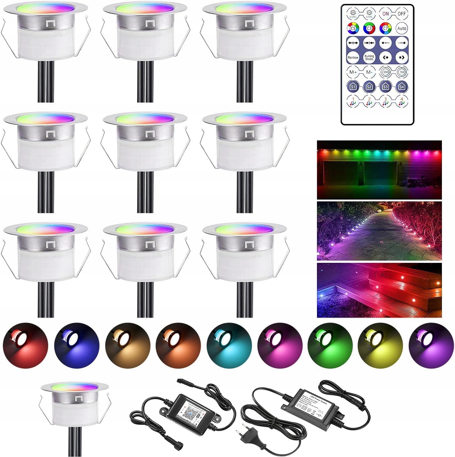 10 szt. WiFi Bluetooth Dynamiczne Kolory LED Lampy Podłogowe Multicolor Efekt Chasing Oświetlenie Tarasowe Działa z Alexa, Google Home, DC12V Ø45mm IP67 Wodoodporne LED Reflektory Tarasowe