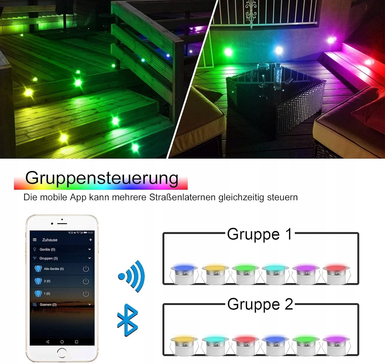 LED BODENEINBAULEUCHTEN WiFi Bluetooth Kolorowe IP67 Alexa Google Home