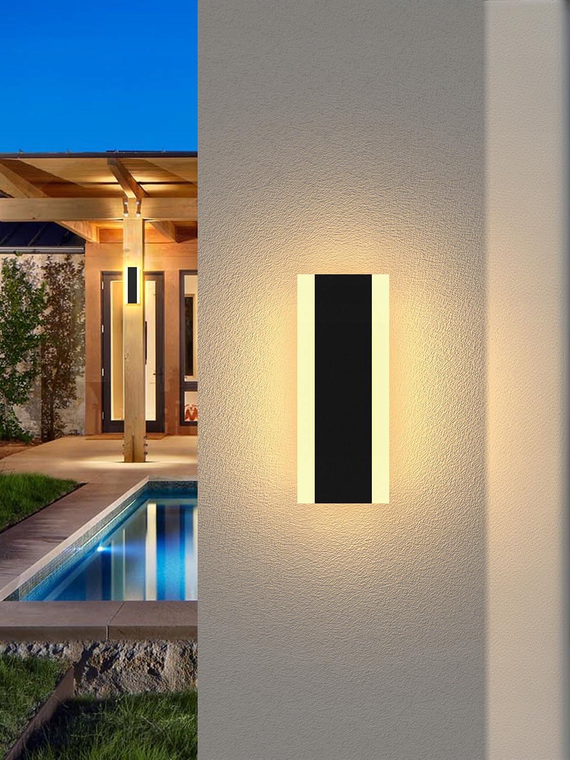 IP65 wodoodporna: Kreatywna zewnętrzna lampa ścienna to styl outdoorowy, odporna na deszcz i wodę, może być używana w każdym pomieszczeniu na zewnątrz lub wewnątrz. Dostępne są światło białe i ciepłe światło do wyboru, może być używana w sypialni, salonie, klatce schodowej lub łazience. Wodoodporny klej w wodoodpornej lampie ściennej jest przezroczysty i może mieć lekki zapach przy otwieraniu produktu.