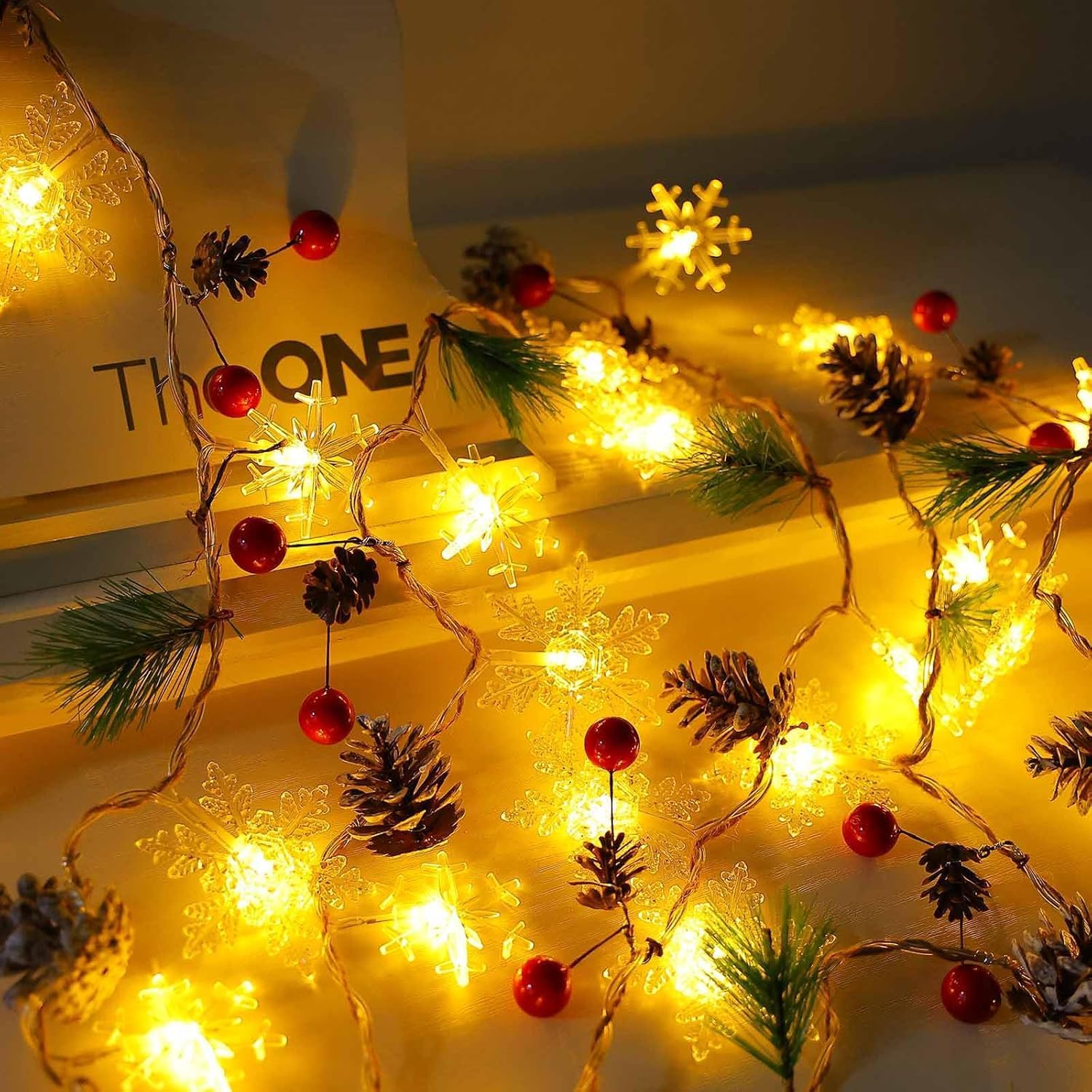 【Świąteczna dekoracja kurtyna świetlna】2M girlanda świąteczna z 20 diodami LED światełek świątecznych. Ta girlanda świąteczna została ulepszona do długości wystarczającej, aby ozdobić Twój kominek, a dodano światła w kształcie śnieżynek, aby uczynić girlandę jeszcze bardziej kolorową