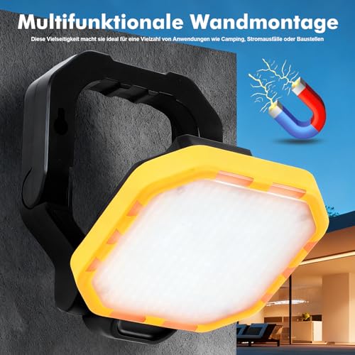 Przenośny reflektor LED, lampa robocza 2000LM, 4 tryby światła, lampa kempingowa USB ładowalna, magnetyczna & IPX4, lampa budowlana na budowy, awarie prądu, kemping, na zewnątrz