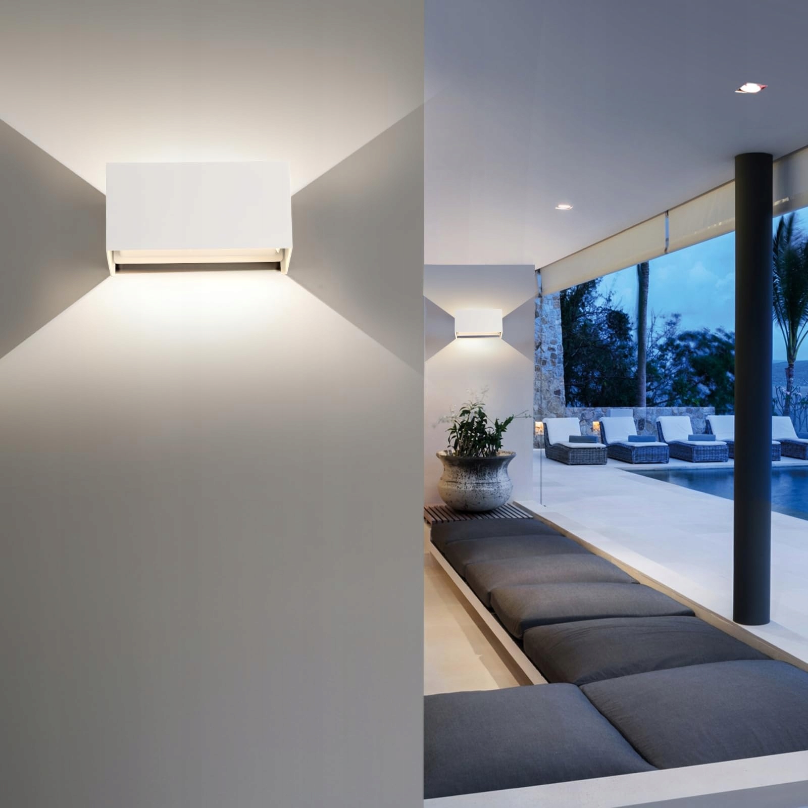 25W LED kinkiet wewnętrzny/zewnętrzny, 4000K lampa zewnętrzna, kinkiet zewnętrzny wewnętrzny, IP65 kinkiet zewnętrzny ścienny UP Down, kinkiet zewnętrzny z regulowanym kątem świecenia naturalna biel, biały, 2 sztuki