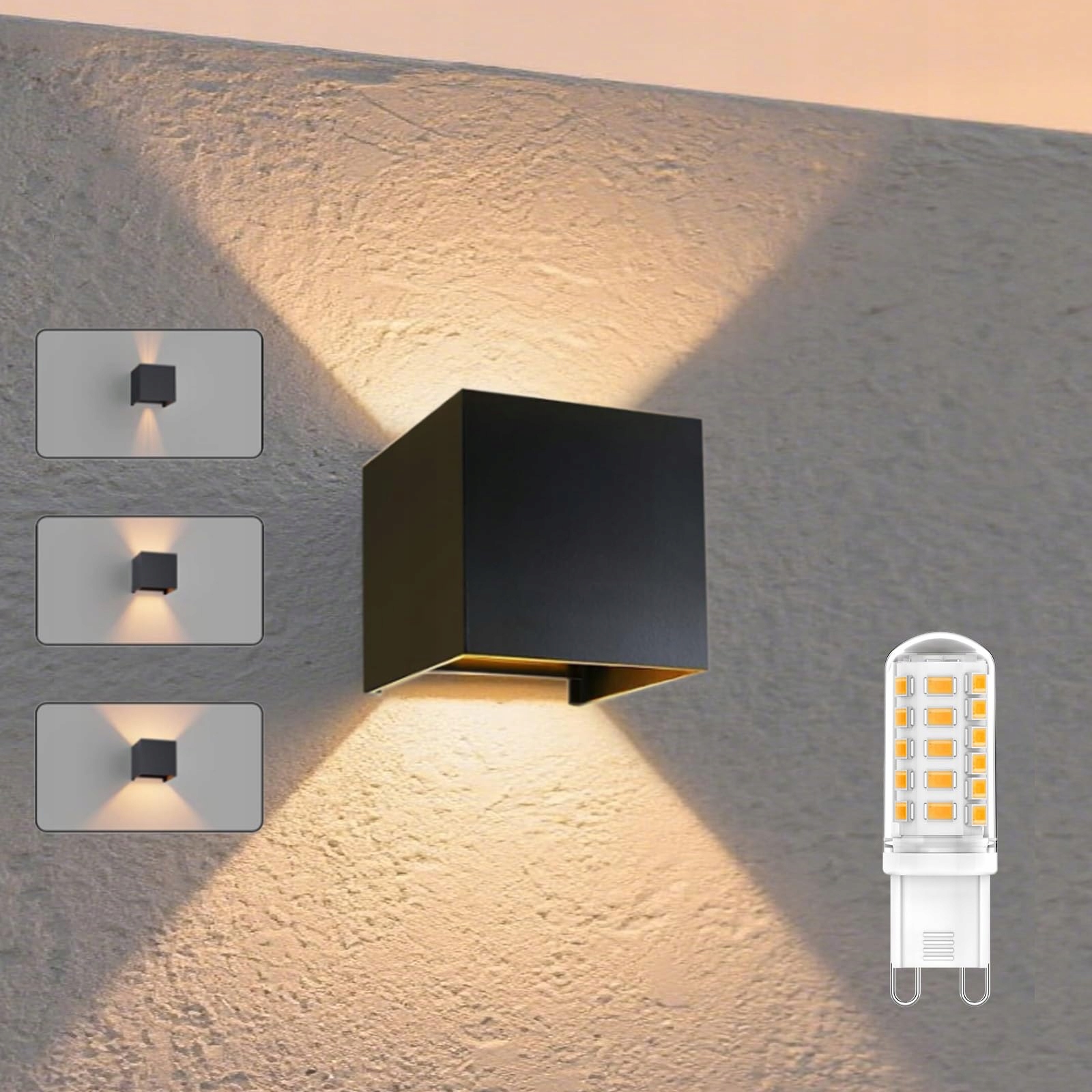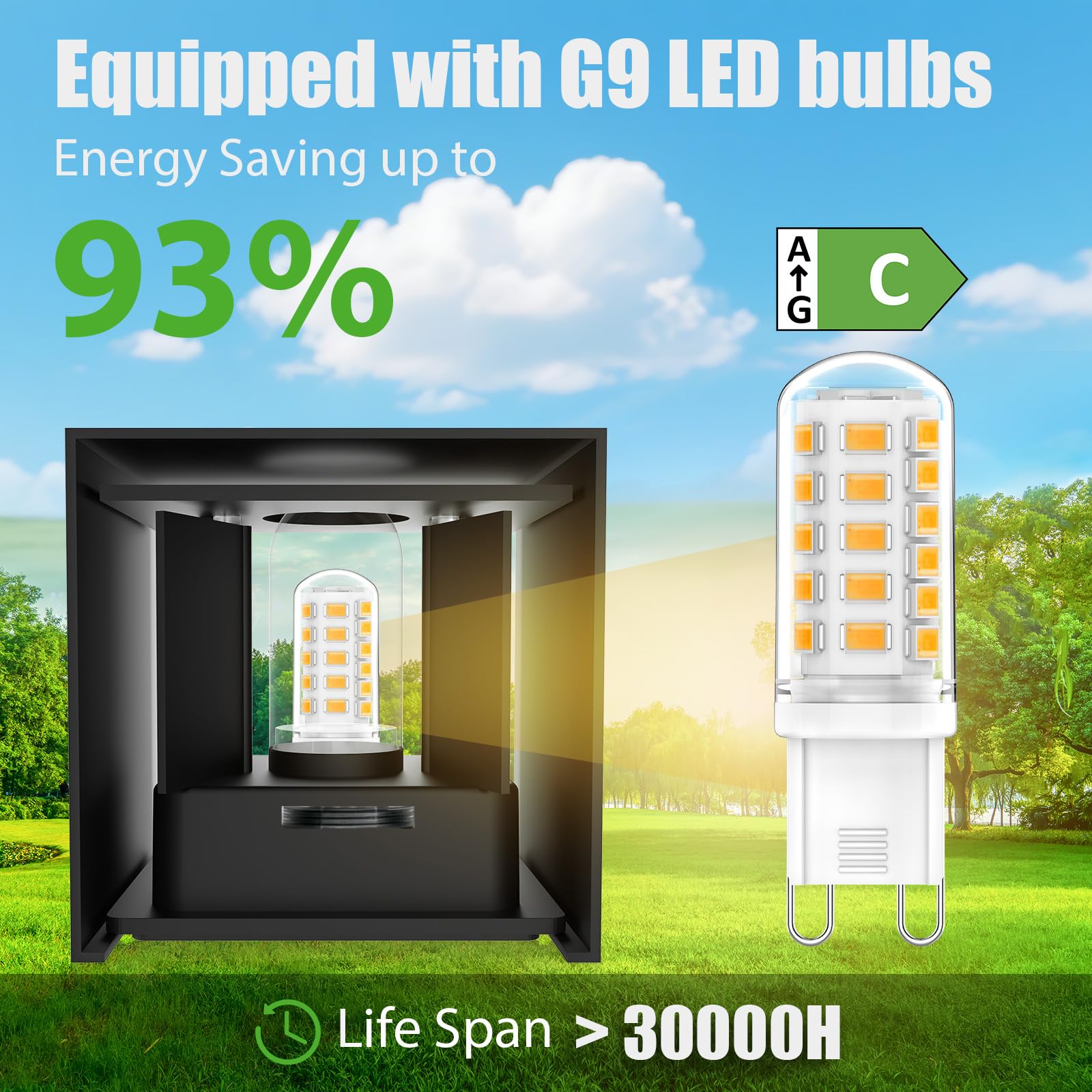 【Czyste aluminium (materiał)】: Ten antracytowy kinkiet zewnętrzny wykonany z czystego aluminium imponuje nowoczesnym, eleganckim designem. Doskonale pasuje do różnych stylów wnętrz i jest wyposażony w wysoko wydajną energooszczędną lampę G9 (bez ściemniania) – niskie zużycie, wysoka jasność, idealny jako kinkiet zewnętrzny.