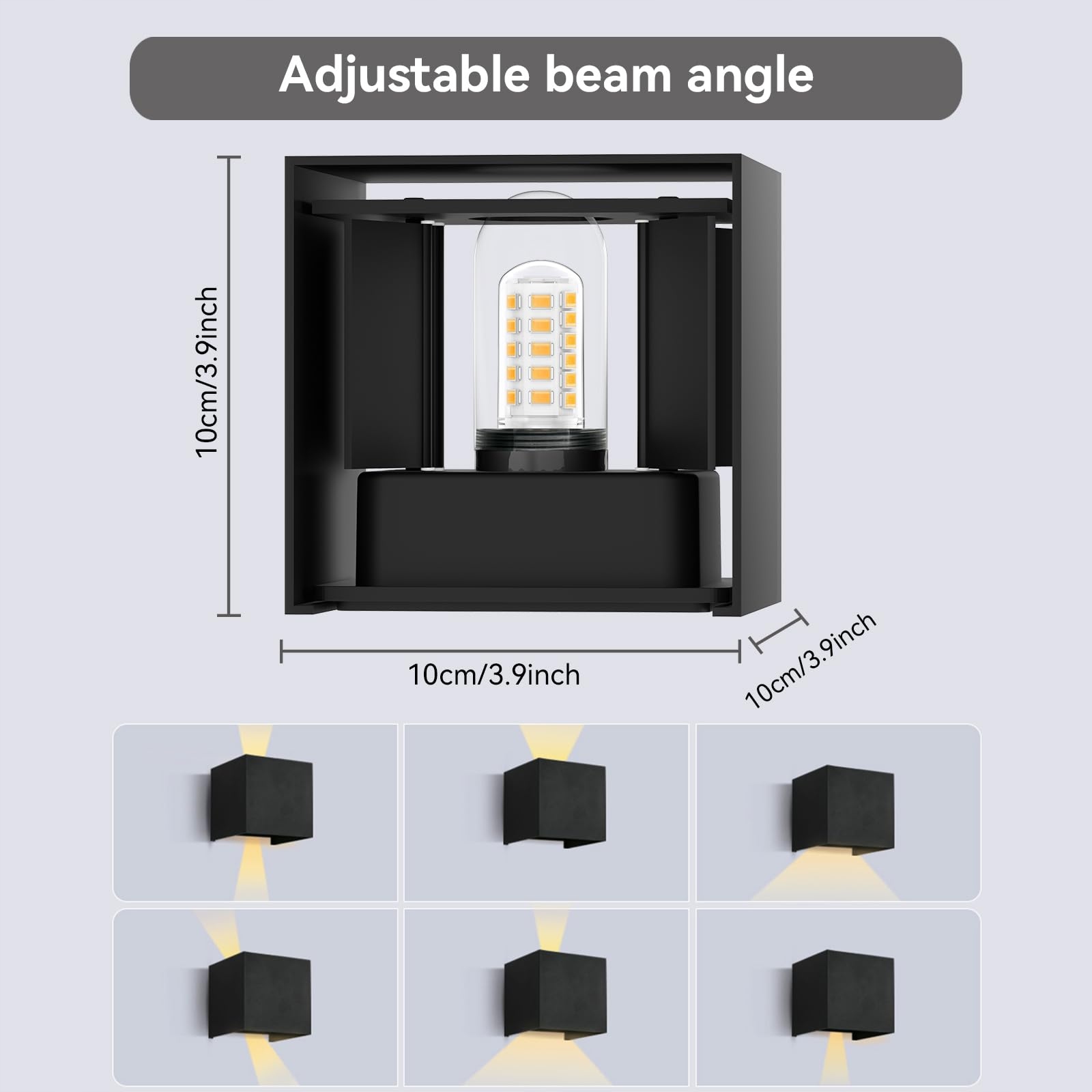 【Specyfikacje i łatwy montaż】: Wymiary: 100x100x100mm; kompaktowa konstrukcja umożliwia łatwy montaż na ścianie. W zestawie materiały montażowe i czytelna instrukcja, odpowiednia do użytku jako lampa zewnętrzna lub wewnętrzna.
