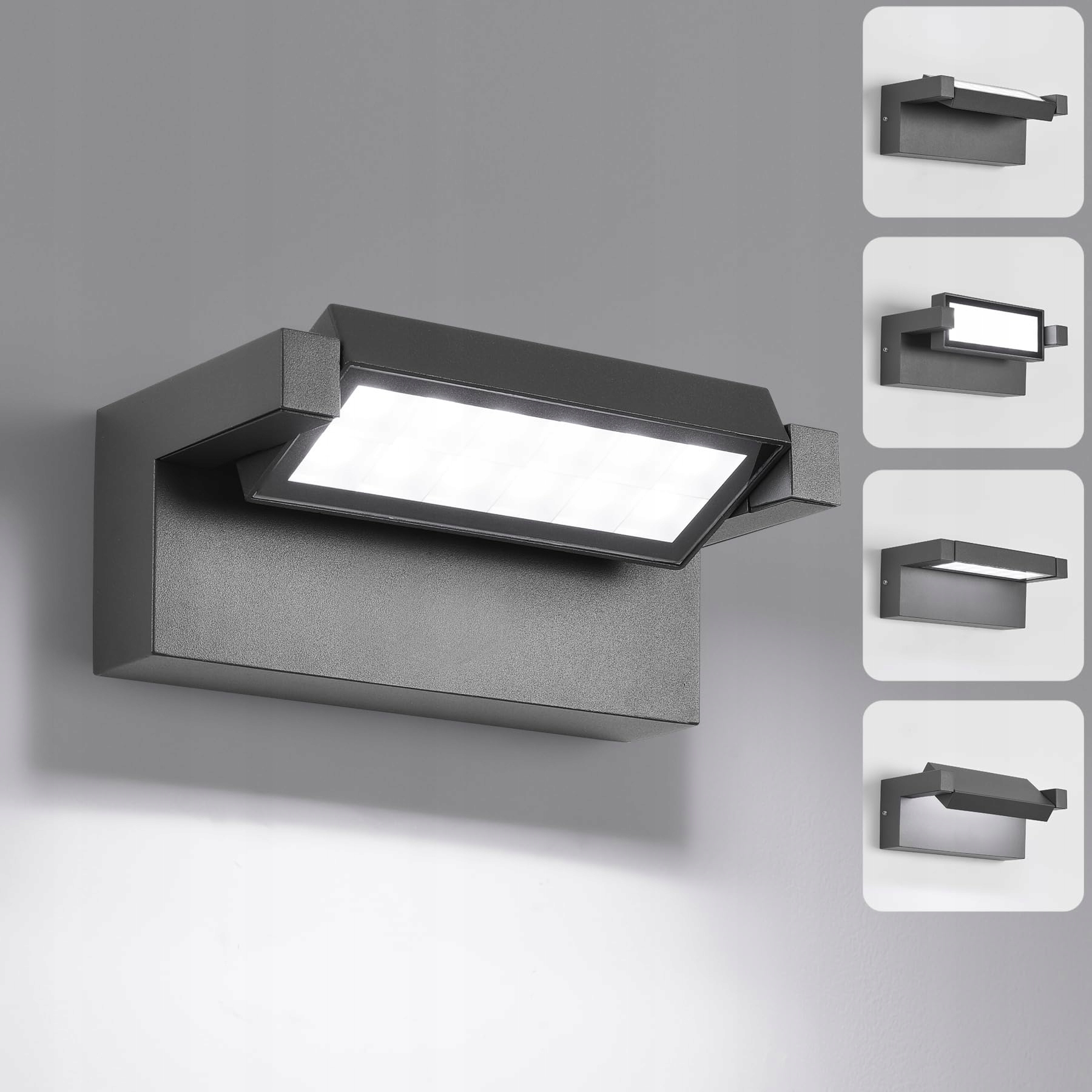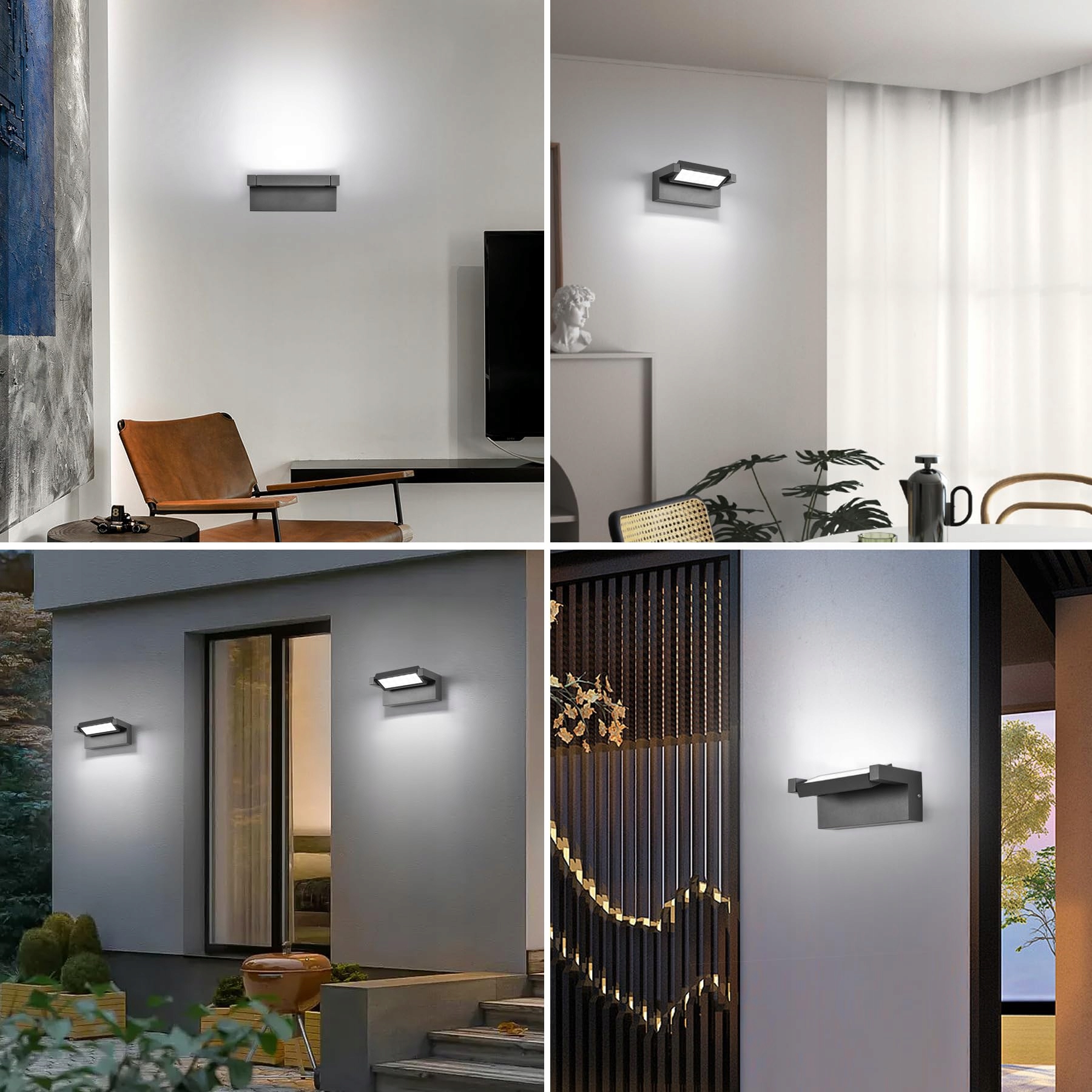 Kinkiet zewnętrzny wewnętrzny 22W LED, lampa zewnętrzna na ścianę, IP65 wodoodporny kinkiet zewnętrzny 6500K zimna biel, kinkiet z obrotowym panelem 350° do ogrodu, tarasu, balkonu, ciemnoszary