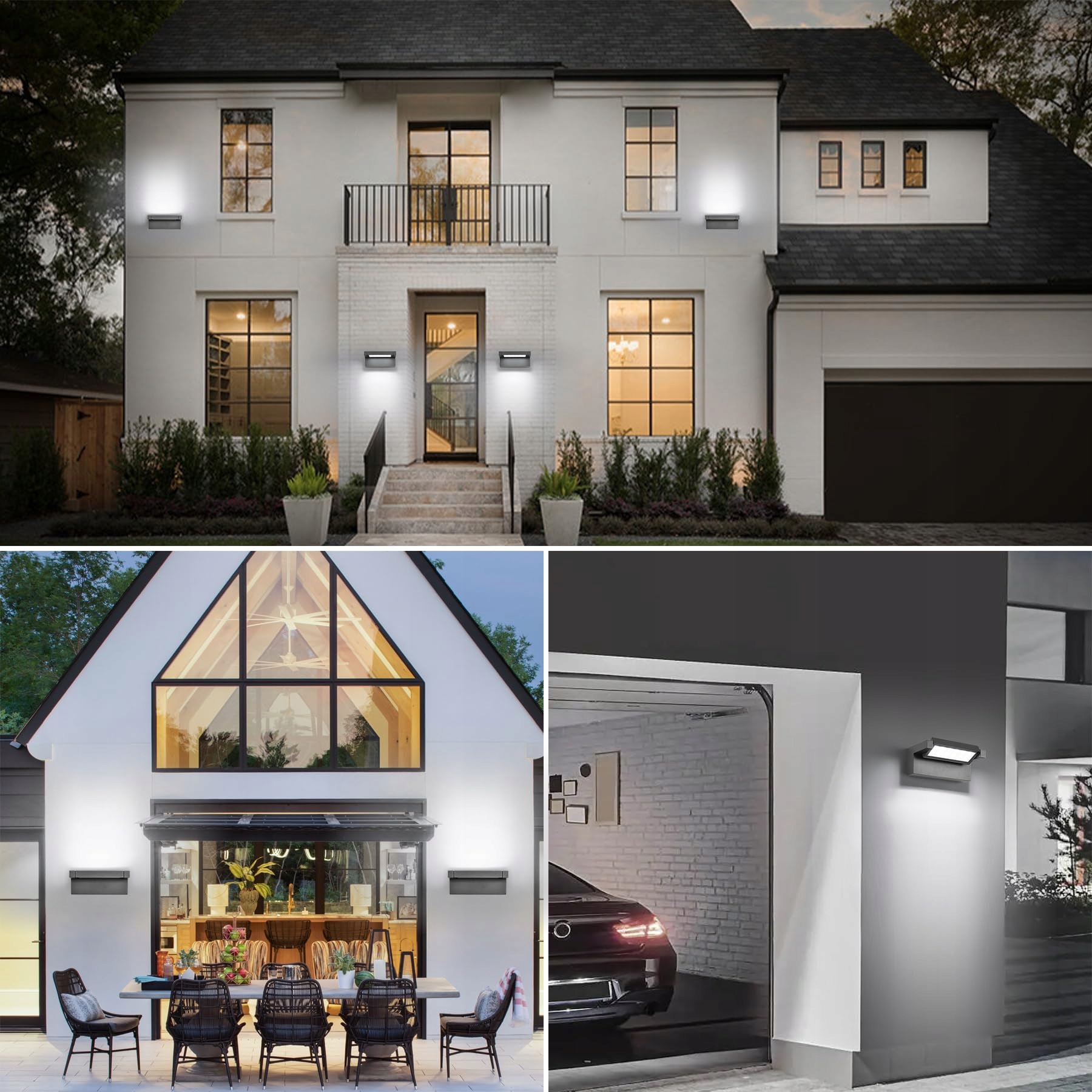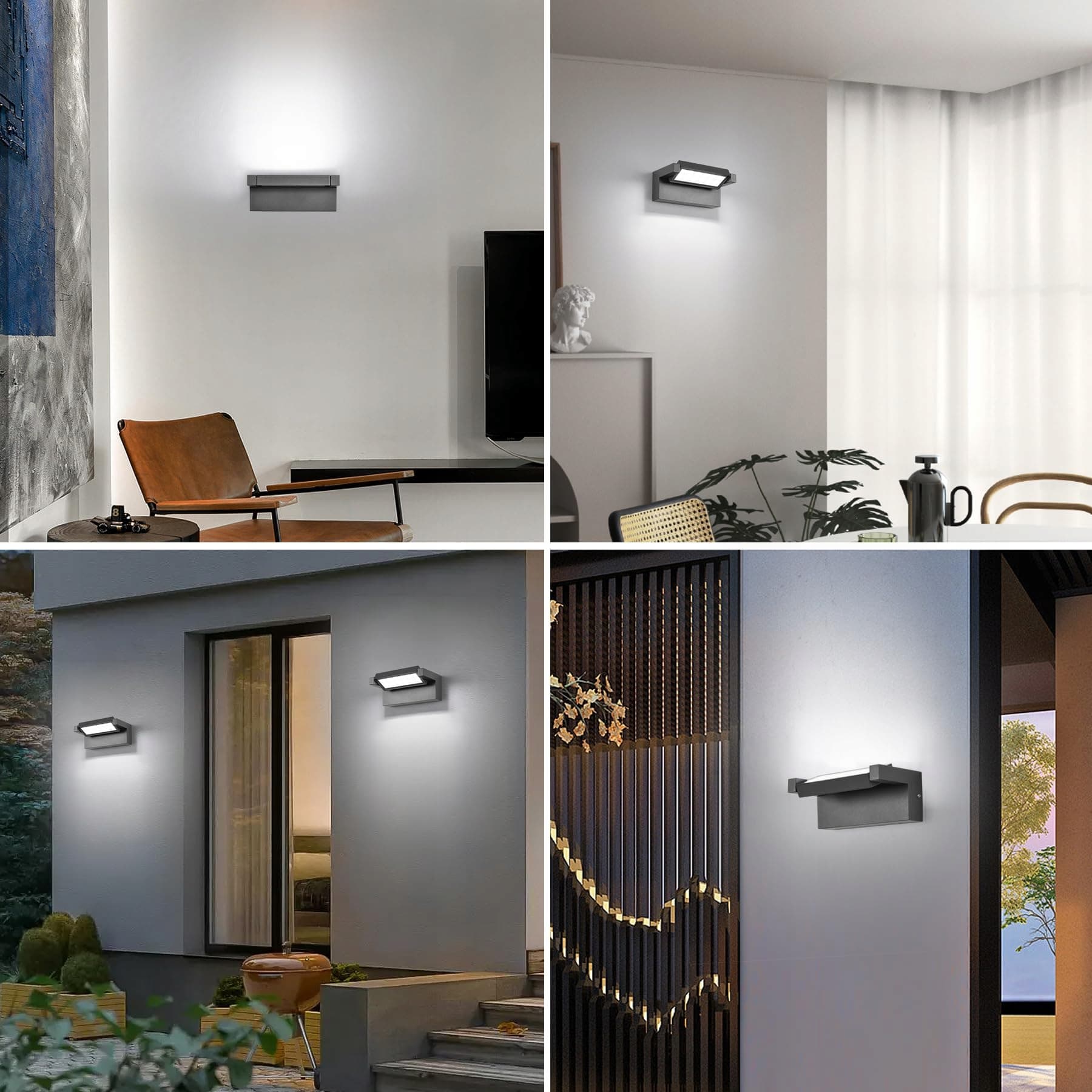 [Obrotowy panel LED]Panel LED kinkietu zewnętrznego można obracać pionowo o 350°. Możesz dostosować kinkiet zewnętrzny w górę i w dół lub do przodu i do tyłu w zależności od potrzeb, oferując piękne efekty świetlne do oświetlenia lub dekoracji.