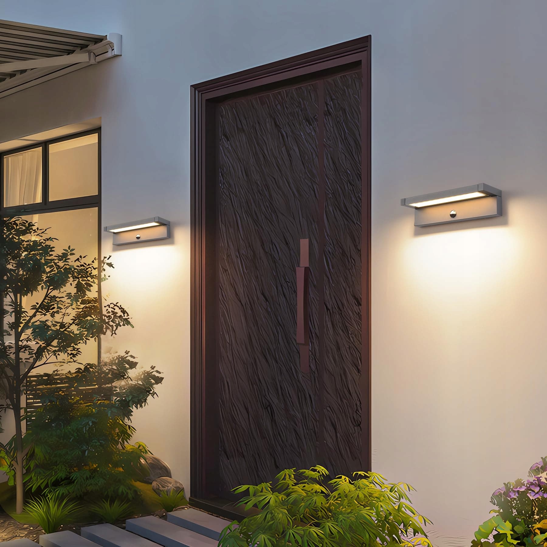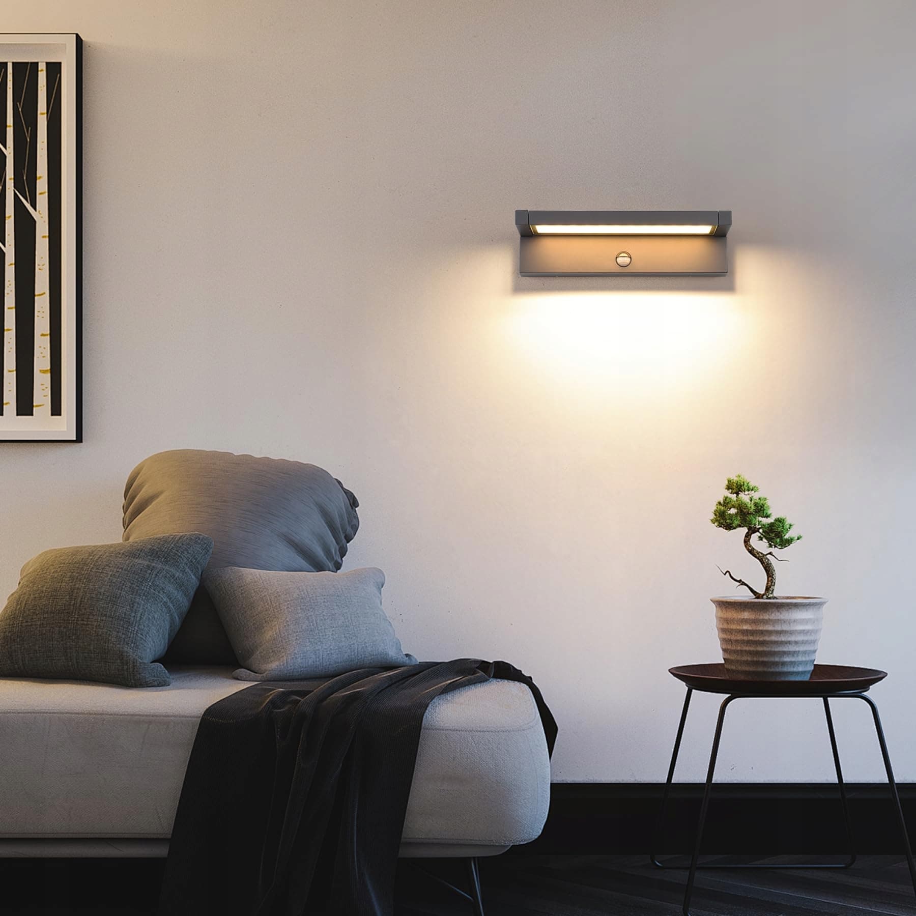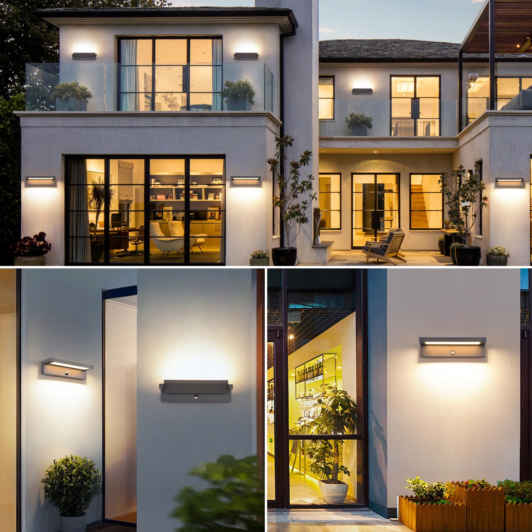 LED kinkiet zewnętrzny z czujnikiem ruchu, 36W lampa ścienna zewnętrzna, IP65 wodoodporny kinkiet zewnętrzny 3000K ciepła biel lampa ścienna wewnętrzna, lampa zewnętrzna z panelem obrotowym 350° do ogrodu tarasu ciemnoszary
