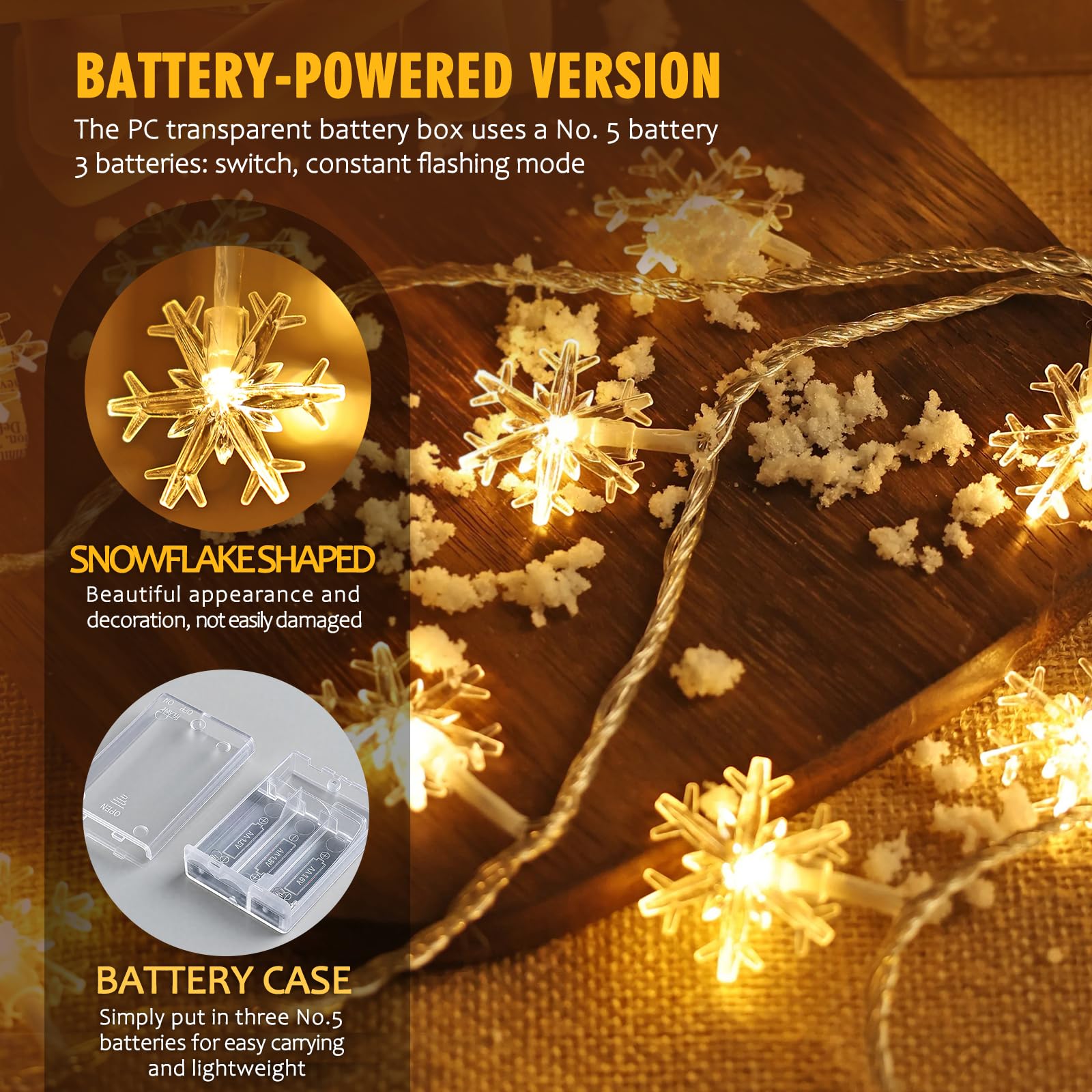 LED LAMPKI ŚNIEŻYNKI 6M 40LED NA BATERIE ŚWIĄTECZNE DEKORACJE WARMWEISS | Premium Supply