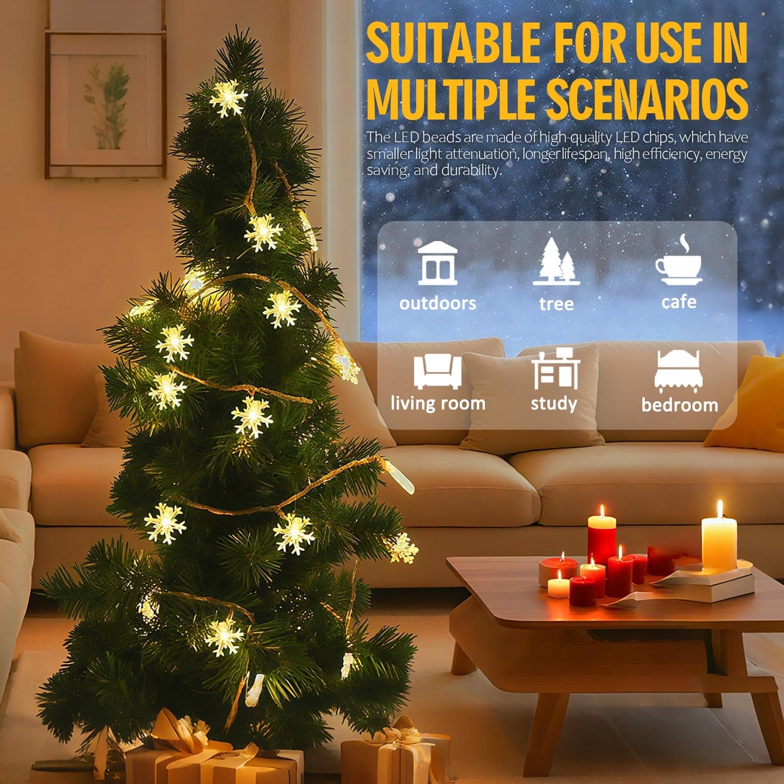 ❄【Ciepło białe łańcuchy świetlne płatki śniegu】Nasz uroczy łańcuch świetlny płatki śniegu z 40 ciepło białymi diodami LED na 6 metrach tworzy przytulną atmosferę do użytku wewnątrz i na zewnątrz. Ten łańcuch świetlny na Boże Narodzenie doskonale nadaje się jako świąteczna dekoracja w salonie, sypialni lub ogrodzie. Łańcuch świetlny płatek śniegu tworzy przytulny nastrój na imprezy, biwaki lub zimowe wieczory.