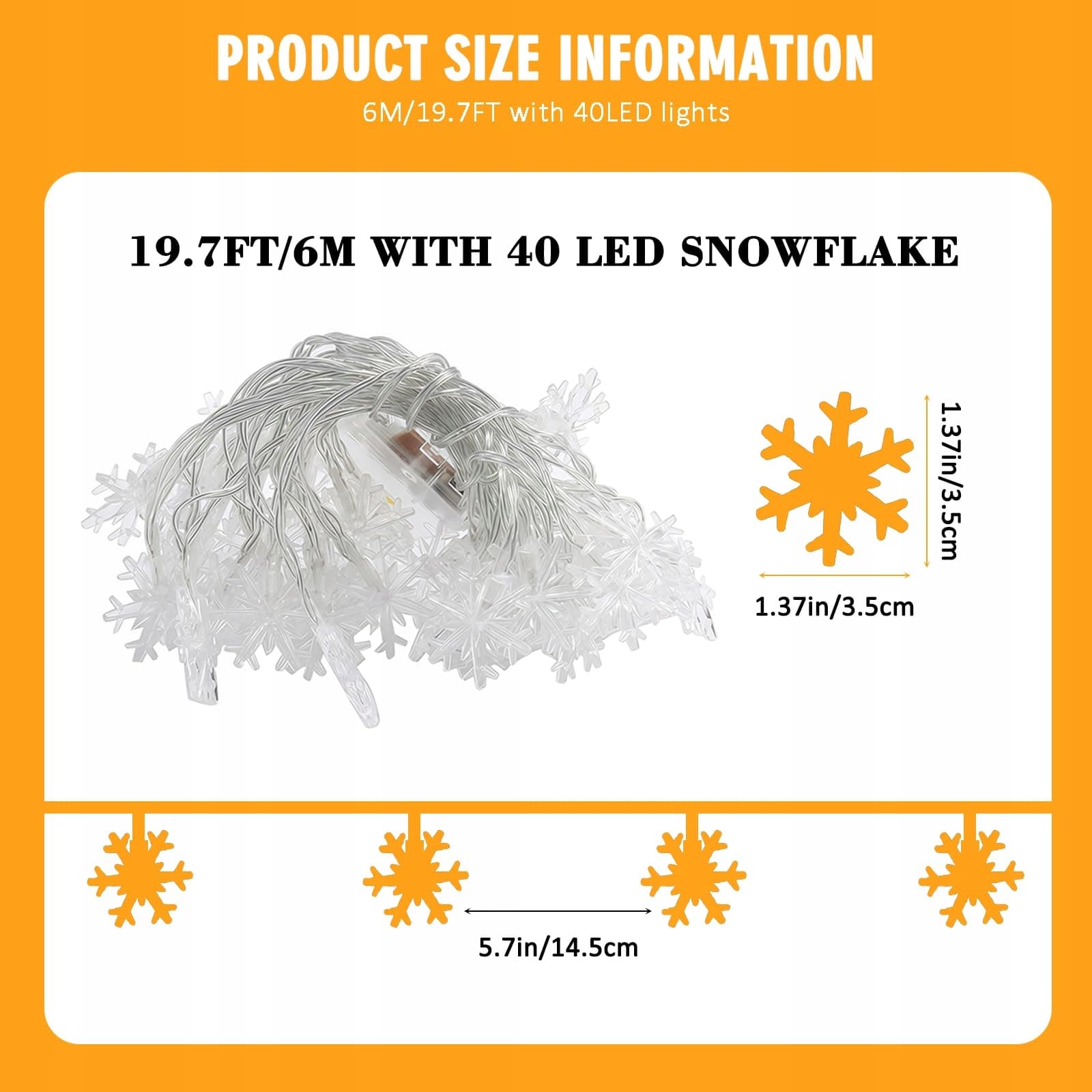 LED LAMPKI ŚNIEŻYNKI 6M 40LED NA BATERIE ŚWIĄTECZNE DEKORACJE WARMWEISS