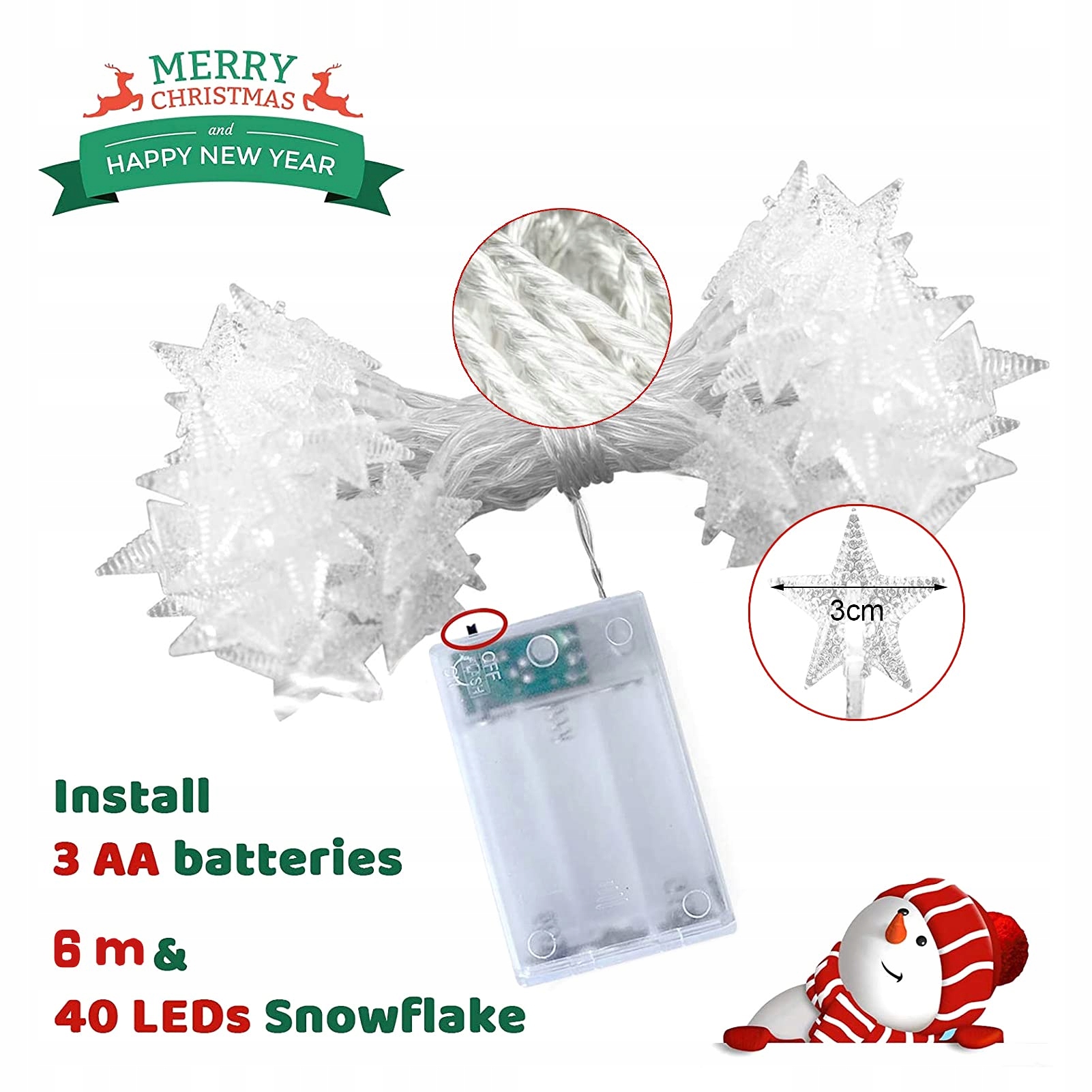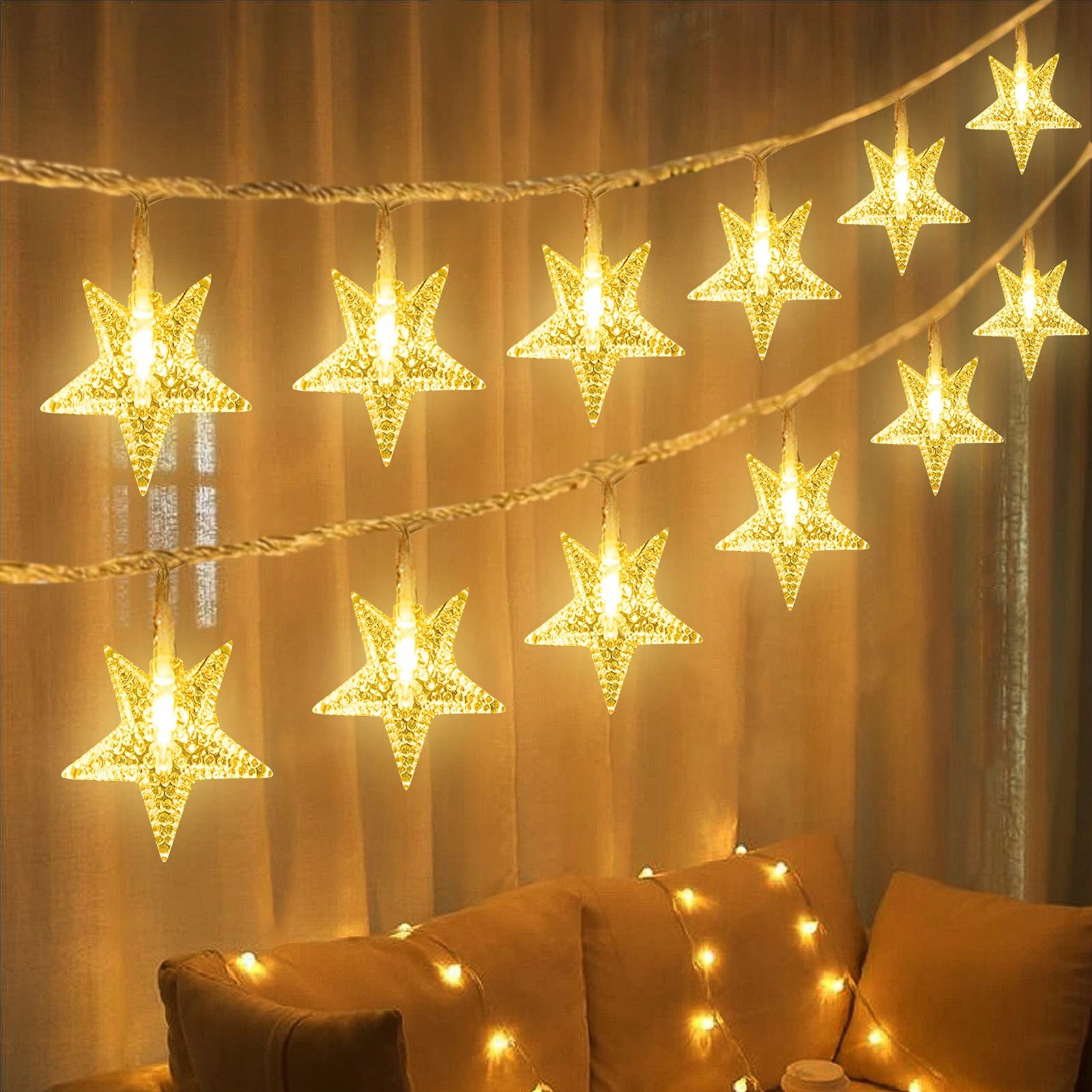 ☆Rozmiar: średnica każdej gwiazdki ok. 3 cm, całkowita długość 6 metrów. Jest przenośna i elastyczna. Możesz zmieniać jej kształt według własnego życzenia. Uwaga: brak baterii, brak pilota