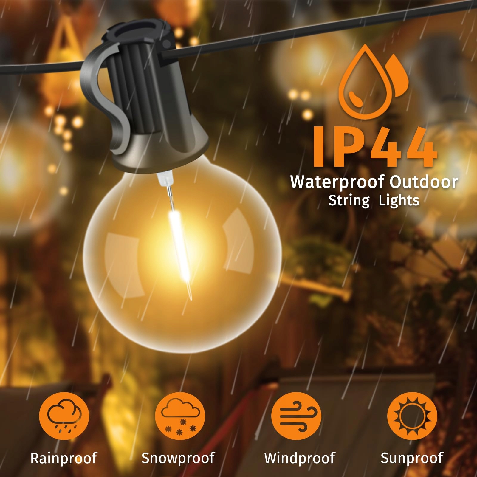 LED Lichterkette Na Zewnątrz, 10M 18 Żarówek + 1 Zapasowa, G40 Żarówki ABS Plastikowe Lichterkette Na Prąd, IP44 Wodoodporna Lichterkette Na Zewnątrz Ciepłobiała do Romantycznego Ogrodu Balkonu Kempingu Wesela