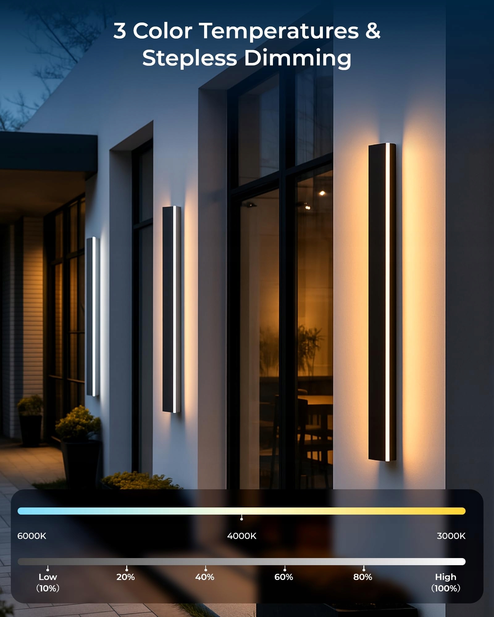 ✨【Ściemnialna i 3 temperatury barwowe】Ta LED-owa lampa zewnętrzna oferuje trzy wybieralne kolory światła – ciepłą biel, neutralną biel i zimną biel – oraz płynną funkcję ściemniania. Ustawienia są wygodnie dostępne przez przełącznik na spodzie lampy – bez pilota czy aplikacji. Dzięki praktycznej funkcji pamięci lampa zapamiętuje ostatnio wybraną jasność i temperaturę barwową nawet po wyłączeniu. Idealna do indywidualnego oświetlenia zewnętrznego wokół domu.