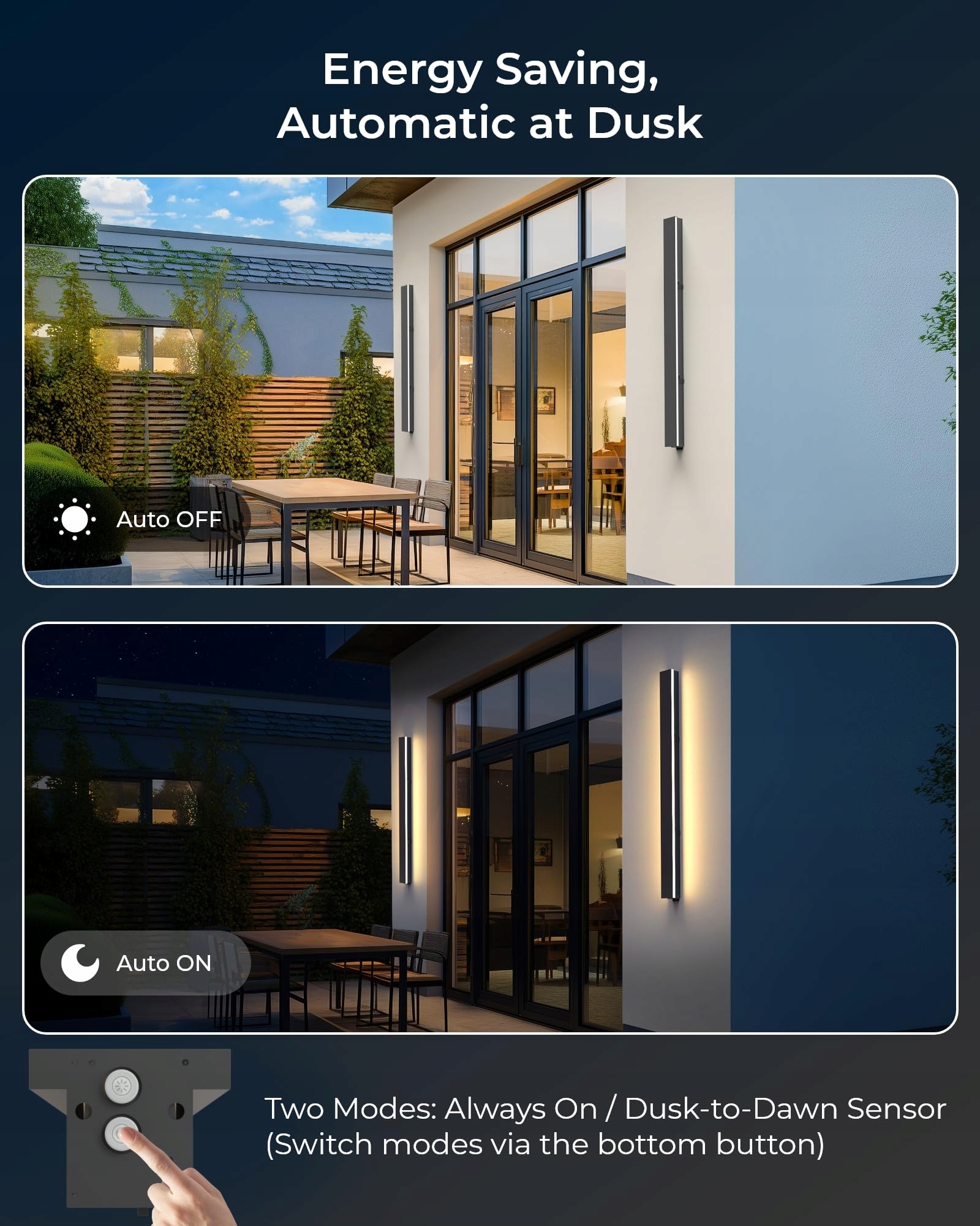 LED Lampa ścienna 80cm/25W, nowoczesna lampa zewnętrzna z czujnikiem zmierzchu, ściemnialna, 3 temperatury barwowe, wodoodporna IP65, stop aluminium – lampa zewnętrzna do ogrodu, tarasu, sypialni, salonu