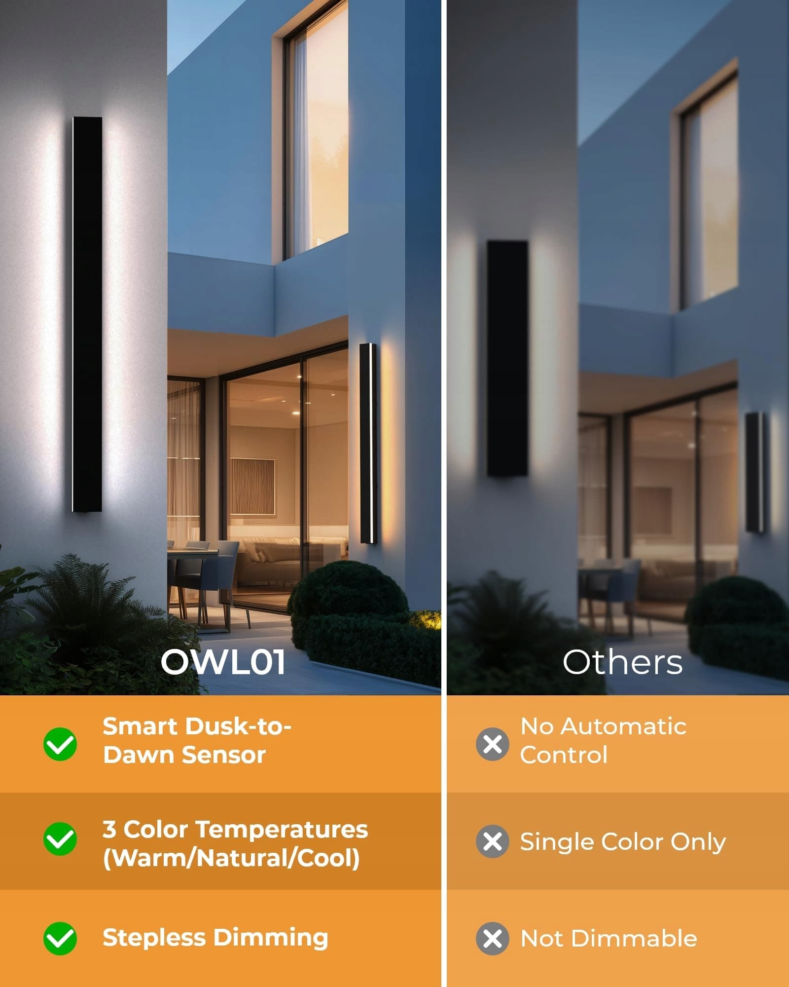 LED Nowoczesna Lampa Ścienna 80cm 25W Czujnik Zmierzchu IP65 Dimmable