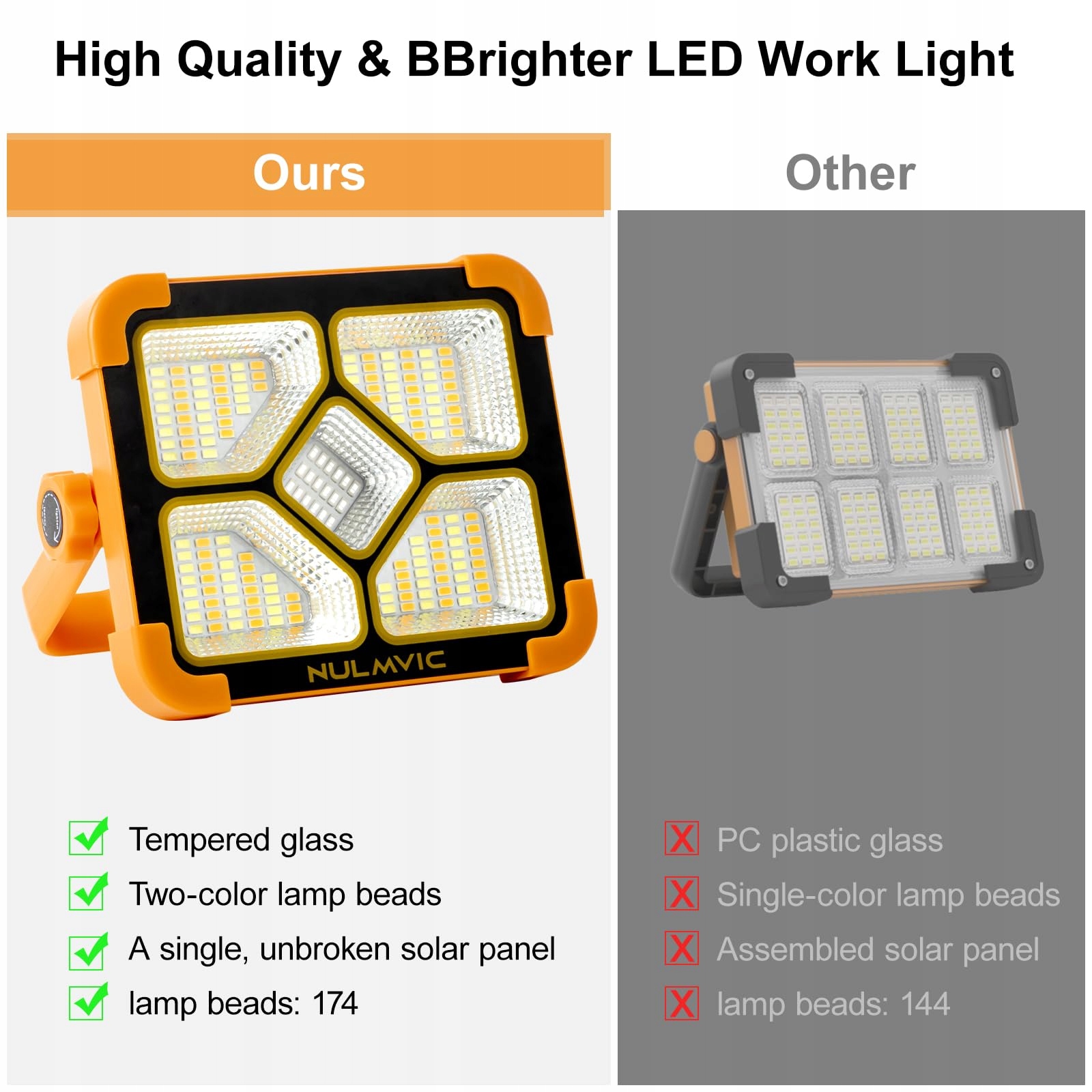LED Nulmvic Akumulatorowa Lampa Przenośna 60W 4 Tryby USB 6000mAh | Premium Supply