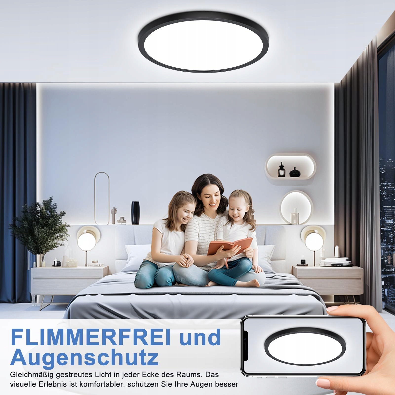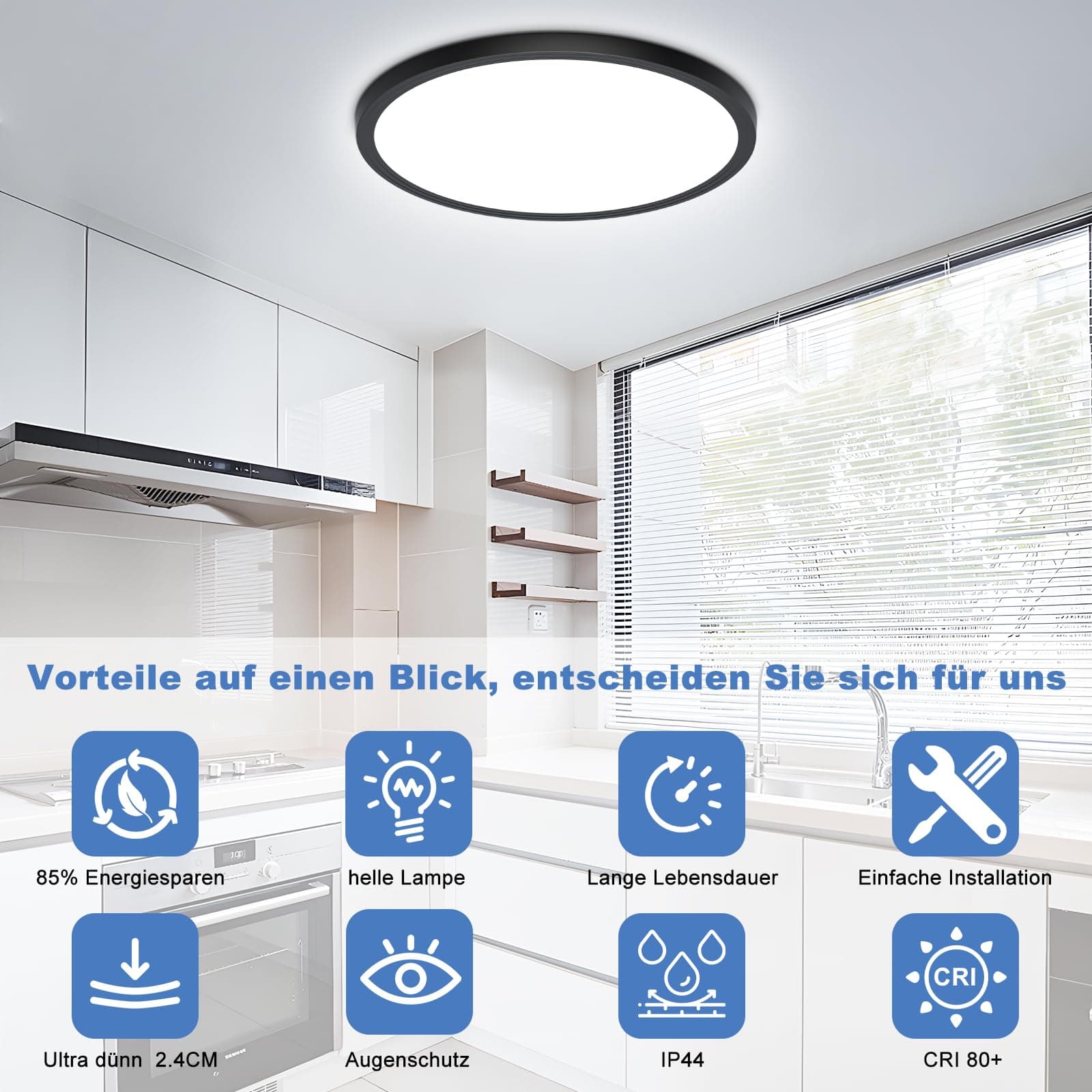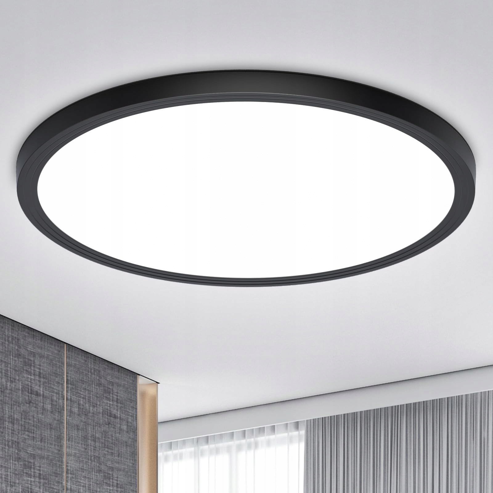 💡 Ultra jasna, ultracienka, elegancki nowoczesny design 💡Okrągła czarna lampa sufitowa LED o grubości zaledwie 2,4 cm, ultracienki prosty design linii, który wygląda smukło, elegancko i gustownie. Płaska nowoczesna czarna lampa sufitowa LED pasuje do wszystkich stylów wnętrz, oferując energetyczne, czyste oświetlenie. 6500K idealne zimne białe światło tworzy przyjemne środowisko świetlne dla Ciebie.
