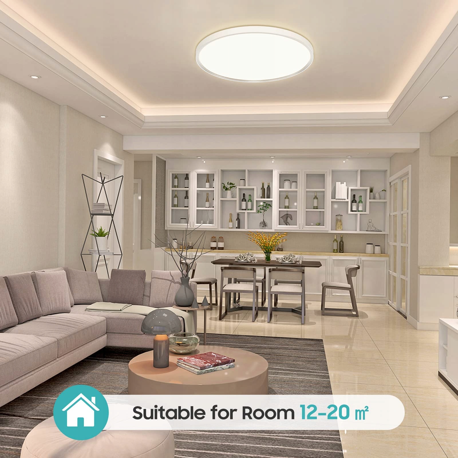 👀 Ochrona oczu, Wysoki wskaźnik oddawania barw 👀 24 W 2400LM lampa sufitowa LED do korytarza ma wysoki wskaźnik oddawania barw (CRI>80). Realistyczne kolory są bardziej przyjemne dla ludzkiego oka. Klosz lampy ma wysoką przepuszczalność światła, a naturalne światło jest równomierne i miękkie, bez olśnienia czy migotania. Równomiernie rozproszone światło w każdym kącie pomieszczenia. Doświadczenie wizualne jest bardziej komfortowe, lepiej chroni Twoje oczy.