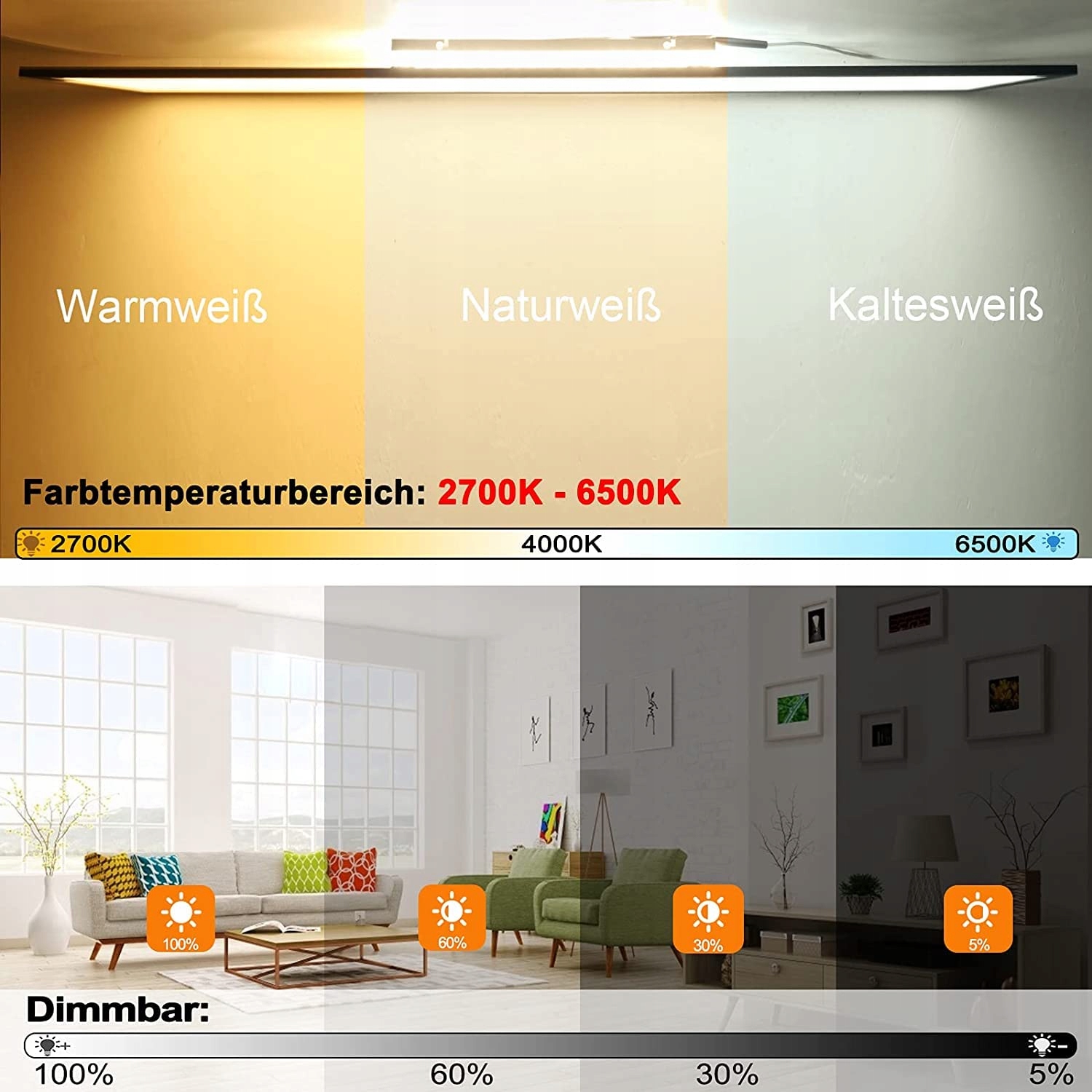 Ściemnialna lampa sufitowa LED 120x30cm z podświetleniem, 55W lampa sufitowa ciepła/naturalna/zimna biel 2700-6500K lampa dzienna z pilotem i funkcją pamięci do biura, warsztatu, garażu, pokoju, kuchni