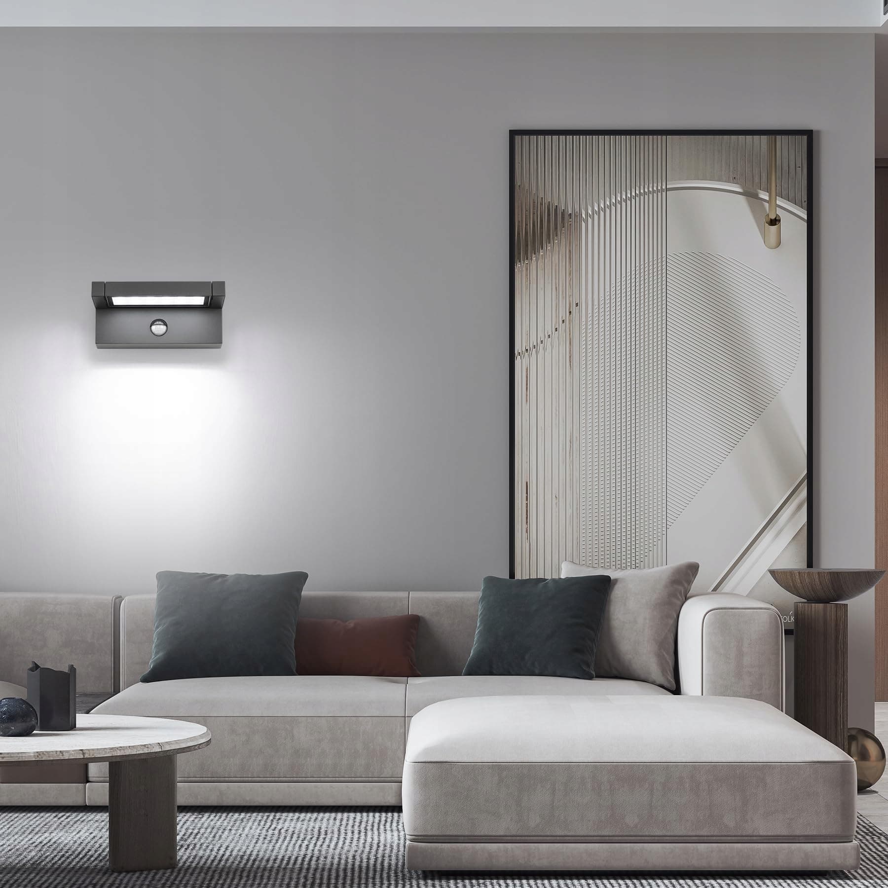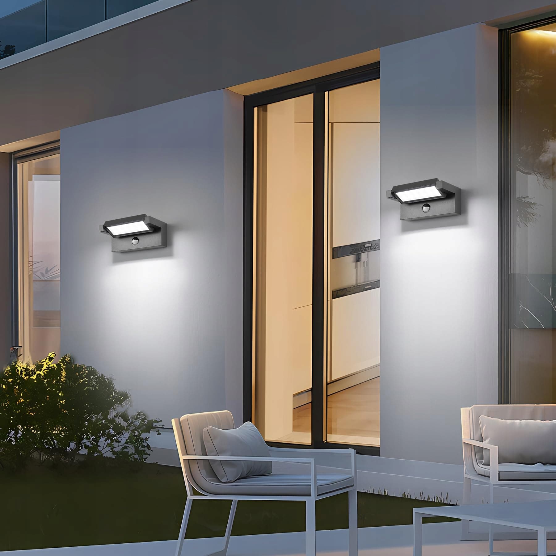[Obrotowy Panel LED] Panel LED lampy ściennej z czujnikiem ruchu można obracać pionowo o 350°. Możesz dostosować lampę zewnętrzną w górę i w dół lub w przód i w tył w zależności od potrzeb, lampa ścienna oferuje piękne efekty świetlne do oświetlenia lub dekoracji.