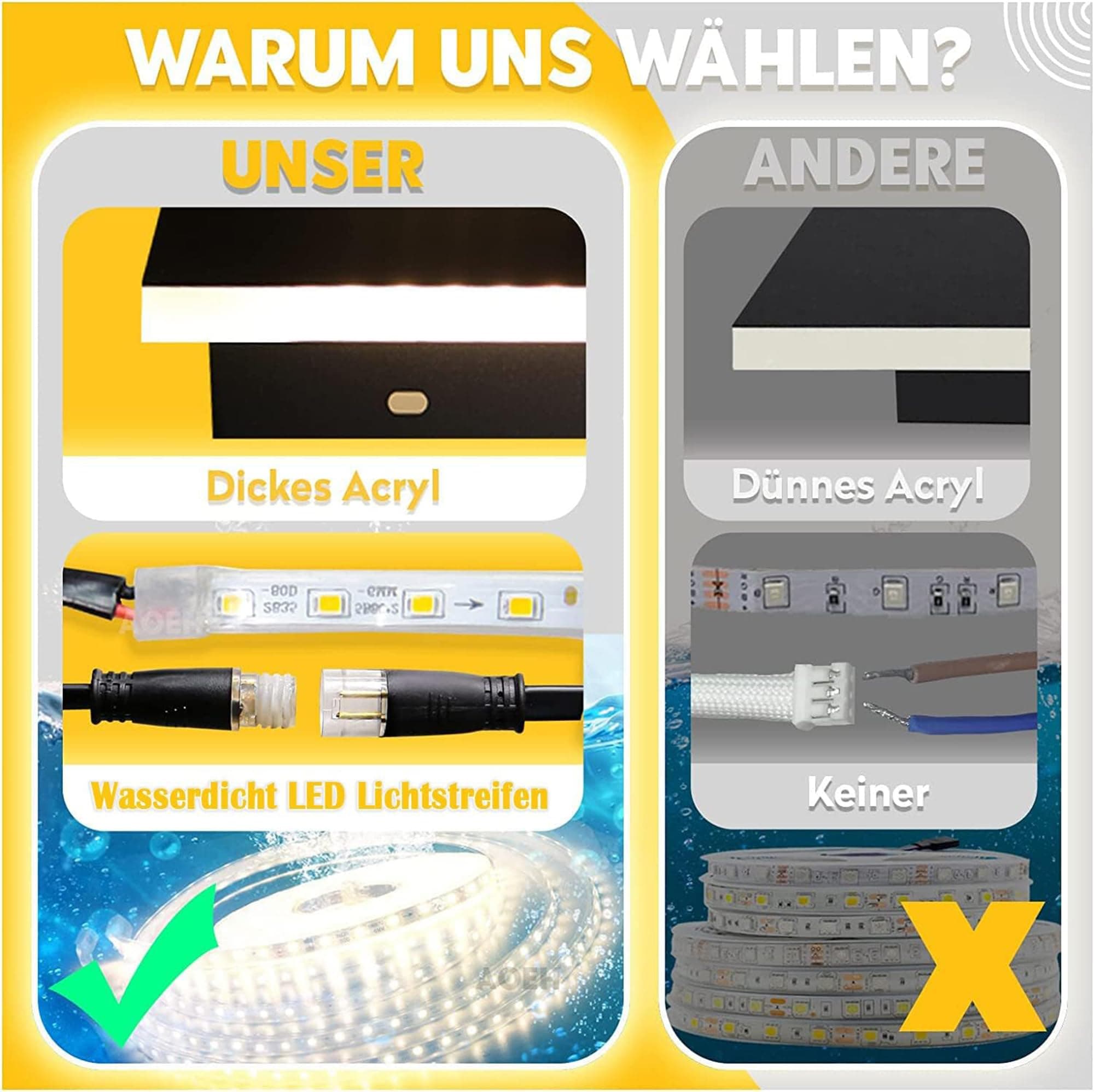 [Wodoodporny pasek LED]Źródło światła: ciepłe światło, temperatura barwowa: 3000 K, pasek LED przeszedł rygorystyczną ochronę wodoodporną i jest wyposażony w wodoodporną folię ochronną, aby zapewnić, że woda nie dotknie źródła światła, tekstura jest niezawodna, piękna i trwała. Ochrona środowiska i oszczędność energii, niskie wytwarzanie ciepła, brak promieniowania podczerwonego ani UV, niskie zużycie energii