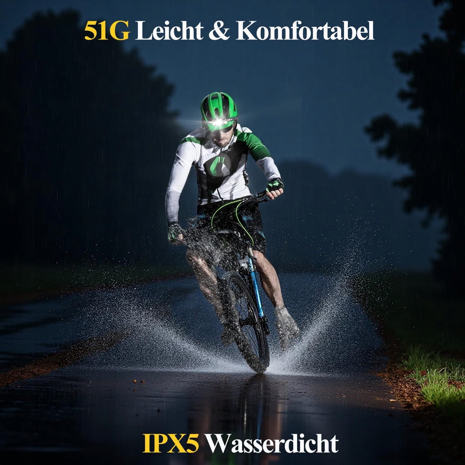 【Wodoodporna i lekka latarka czołowa IPX5】Nasza bardzo jasna latarka czołowa LED jest niezbędna podczas wędrówek i aktywności na świeżym powietrzu, posiada szczelną obudowę odporną na deszcz, śnieg i ekstremalne warunki pogodowe. Latarka czołowa z czerwonym światłem waży tylko 51g i wyposażona jest w miękki, oddychający pasek, co czyni ją jedną z najwygodniejszych wielokrotnie ładowanych latarek czołowych.