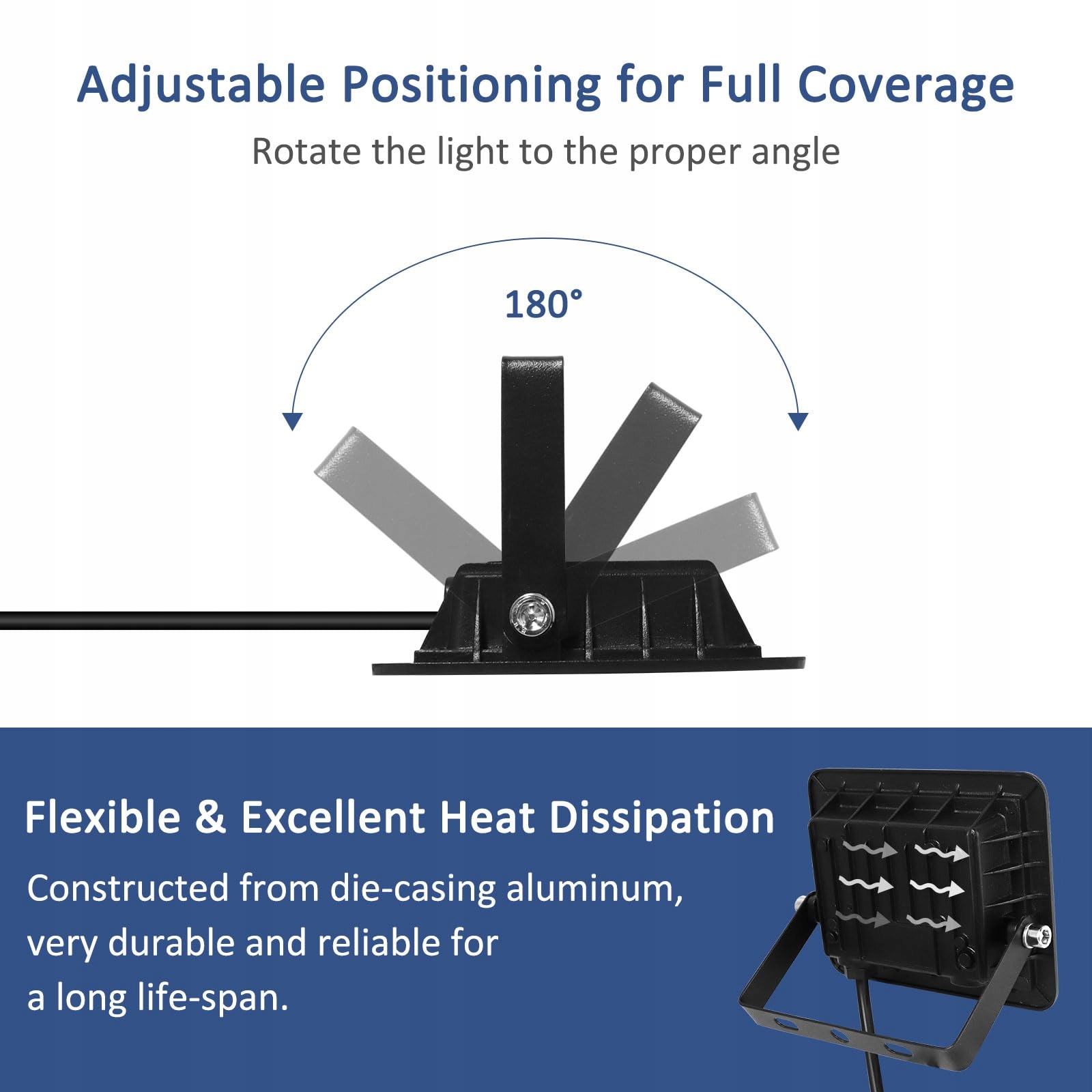 【Dobre odprowadzanie ciepła】Reflektor LED na zewnątrz posiada ultracienką obudowę, która zapewnia dobre odprowadzanie ciepła i wydłuża żywotność lampy. Proszę zauważyć: Ten reflektor LED nie posiada czujnika ruchu.