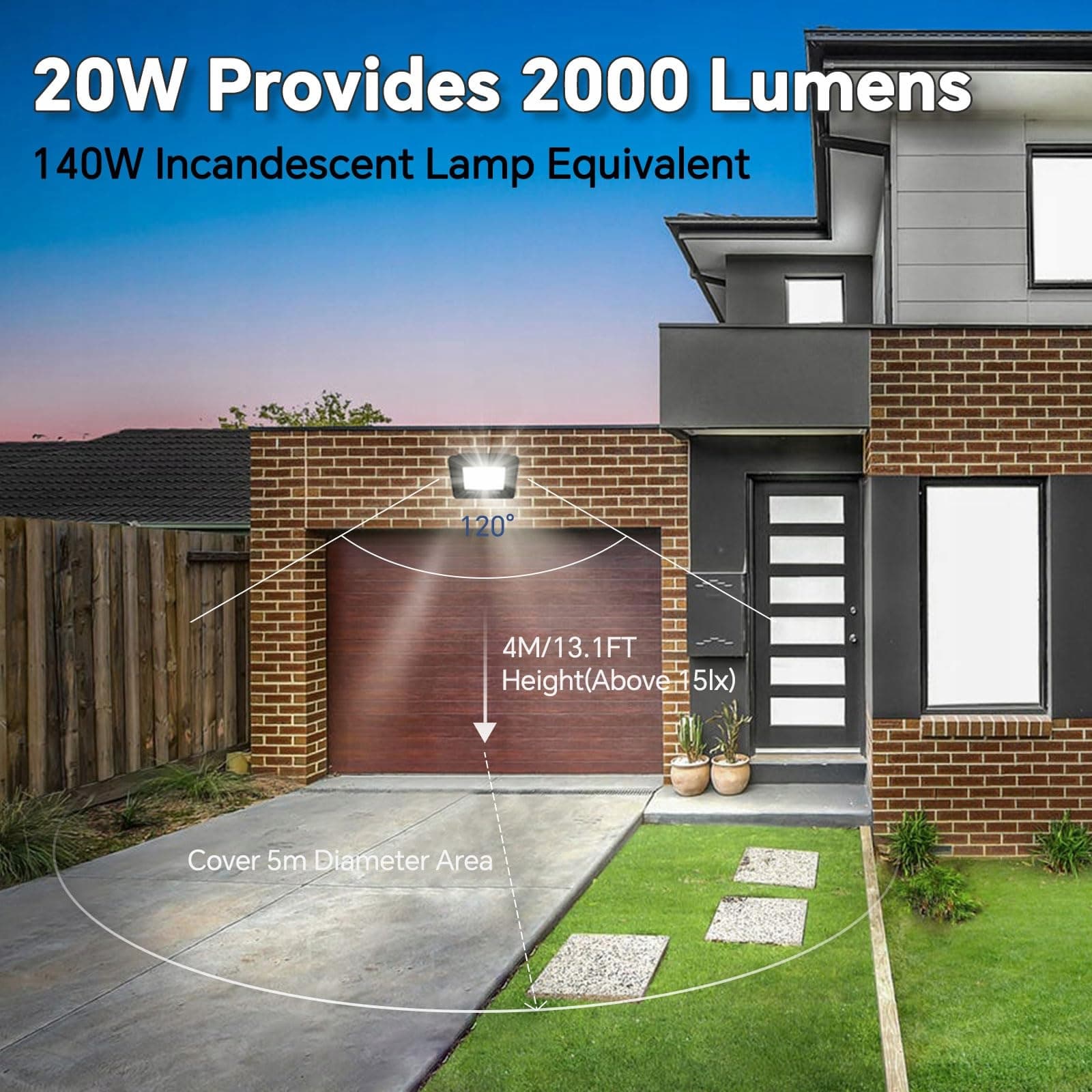 【Superjasny i energooszczędny】2000 lumenów, 6000K zimna biel, reflektor LED na zewnątrz z 24 superjasnymi diodami LED, kąt świecenia 120°, zapewnia szerokie, superjasne oświetlenie, 20W reflektor LED odpowiada 140W żarówce, oszczędza ponad 85% kosztów energii.