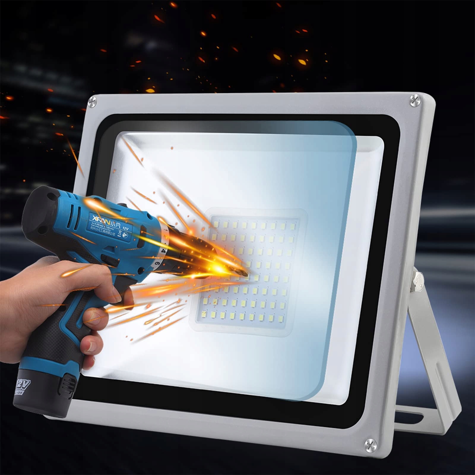 [Wodoodporność IP65]Ten reflektor wykonany jest z obudowy aluminiowej i hartowanego szkła. Dzięki klasie ochrony IP65 reflektor może być używany w różnych trudnych warunkach pogodowych, takich jak deszcz, śnieg i burze.