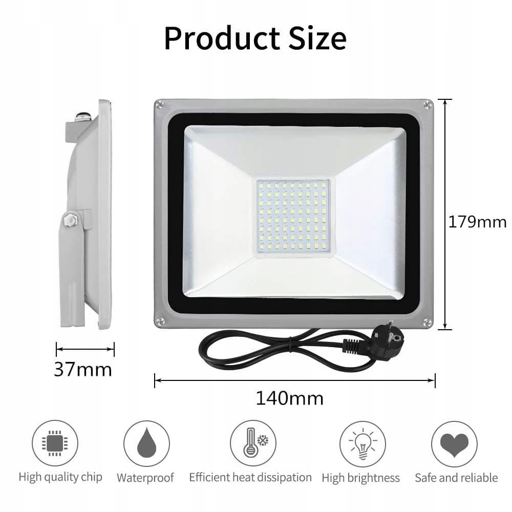 [Superjasny i oszczędny w energii]Ten reflektor LED 50W generuje 5000lm oświetlenia w zimnym białym kolorze. Dzięki zastosowaniu wysokiej jakości chipów LED oszczędza ponad 85% energii w porównaniu do tradycyjnych reflektorów.