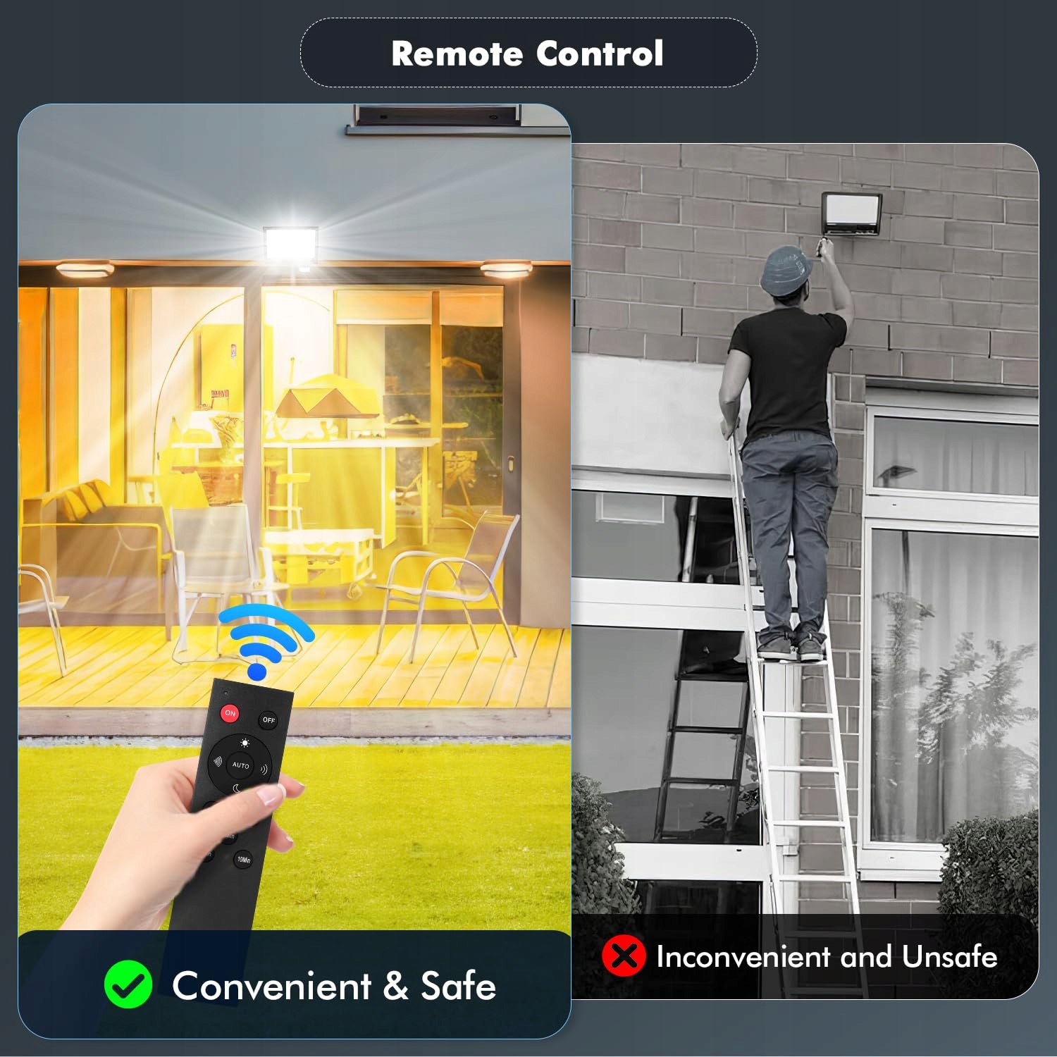 [Wykrywanie ciała ludzkiego] Za pomocą czujnika PIR ciała ludzkiego światła włączają się, gdy pojawiają się osoby, i wyłączają, gdy osoby odchodzą. Ten reflektor z czujnikiem ruchu na zewnątrz z lampą jest doskonałym produktem do oszczędzania pieniędzy.
