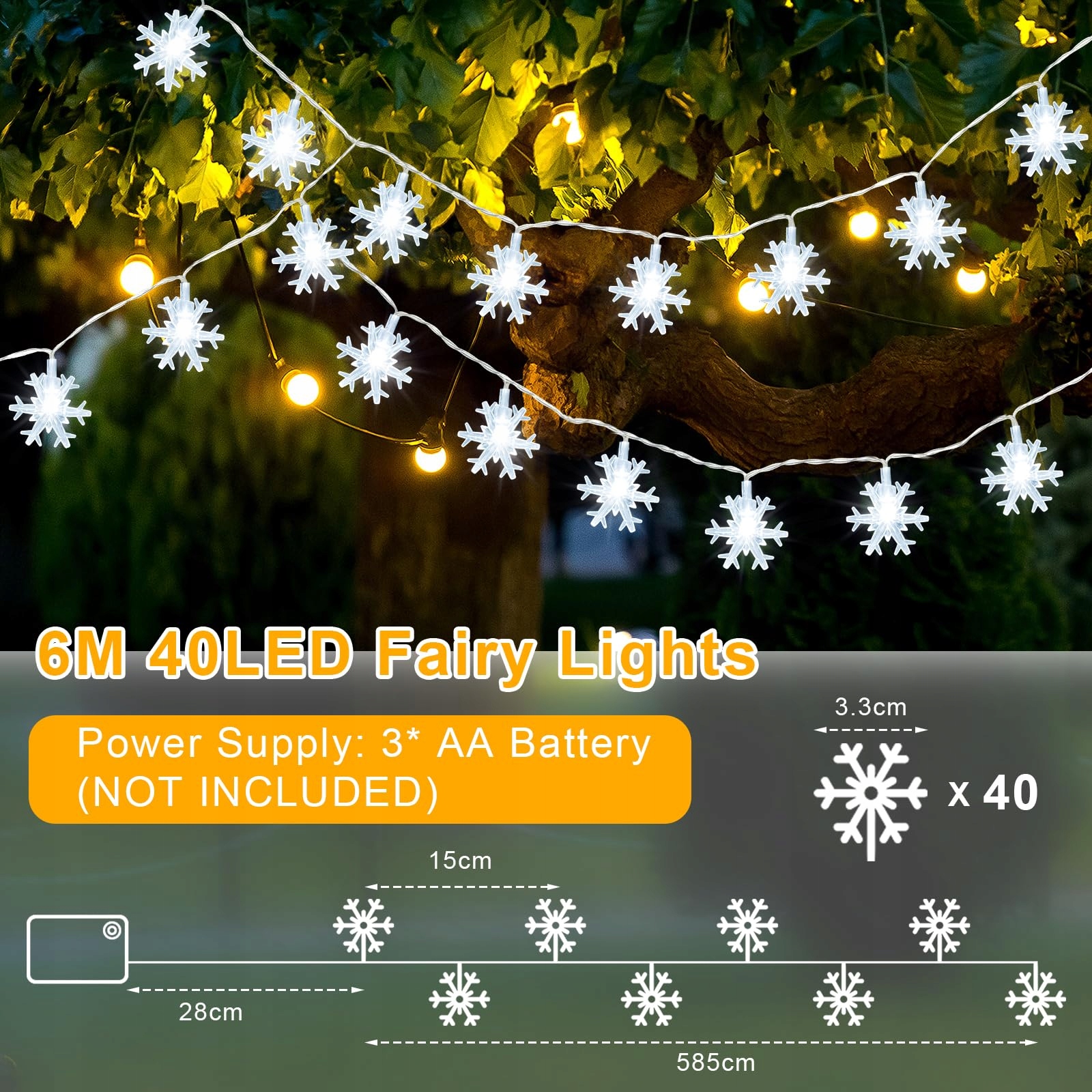 LED ŚWIĄTECZNE LAMPKI 6M 40LED ŚNIEŻYNKI NA BATERIE WODOODPORNE DO OGRODU | Premium Supply
