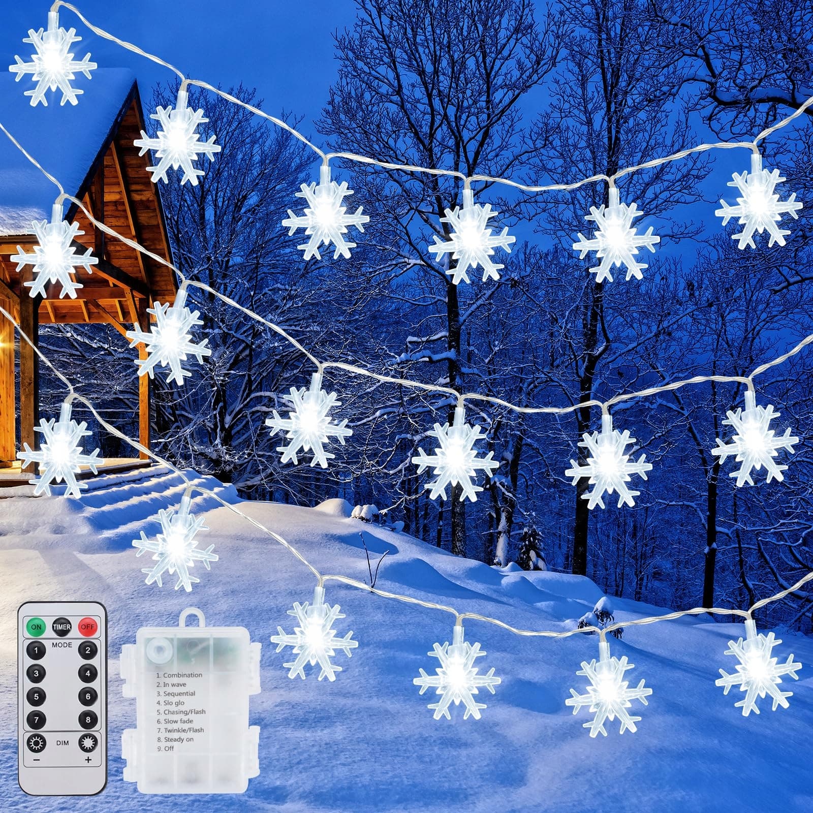 Led łańcuch świetlny świąteczny do wnętrz, 6M 40LED płatek śniegu oświetlenie świąteczne na zewnątrz, zasilany bateriami łańcuch świetlny do wnętrz 8 trybów wodoodporny dekoracja świąteczna na zewnątrz i do wnętrz do ogrodu i choinki