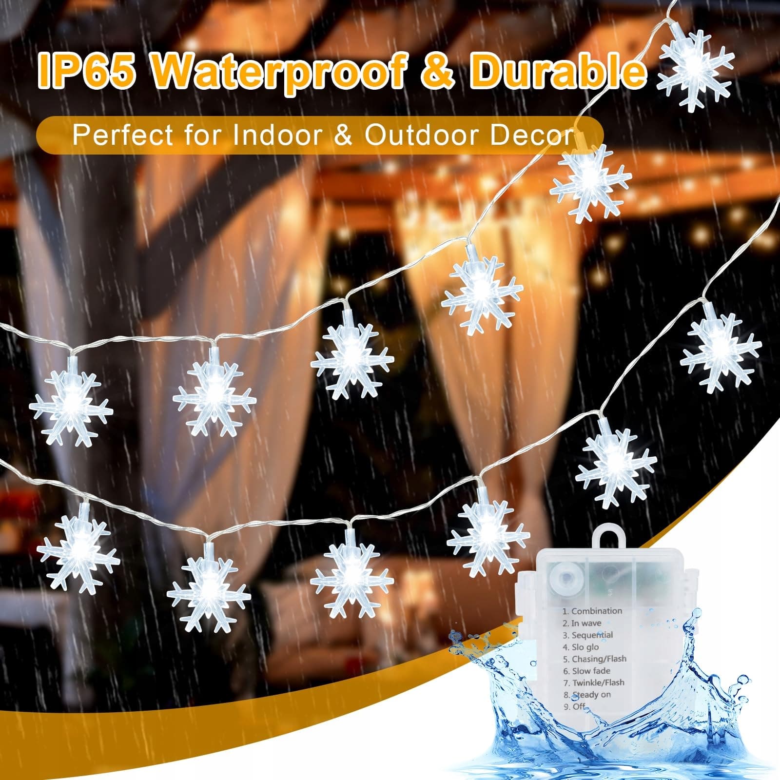 【Zasilany bateriami i bezpieczny w użyciu】Nie wymaga wtyczki, łańcuch świetlny LED z płatkami śniegu jest zasilany przez 3 baterie AA (nie dołączone). Niskie zużycie energii i przyjazny dla środowiska, bezpieczny w dotyku. Białe światło LED jest jaśniejsze niż inne łańcuchy świetlne, ale nie oślepia. Zasilany bateriami łańcuch świetlny tworzy bezpieczną i romantyczną atmosferę dla Ciebie i Twojej rodziny.