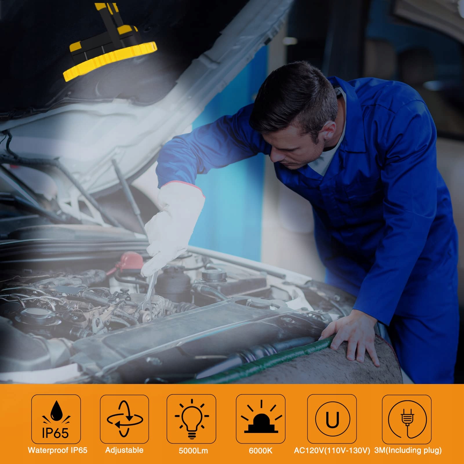【3M kabel zasilający z wtyczką EU】: Lampa robocza LED jest wyposażona w 3-metrowy kabel z wtyczką, dzięki czemu możesz podłączyć swój reflektor budowlany gdziekolwiek.