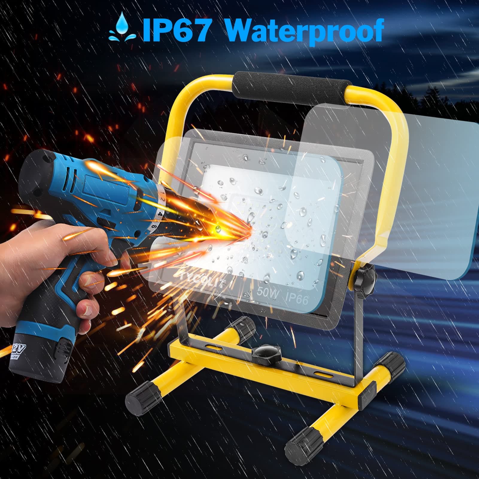 【IP66 Wodoodporność】: Klasa ochrony reflektora budowlanego to IP66, co czyni go pierwszym wyborem do użytku na zewnątrz. Reflektor roboczy LED ma dobrą odporność na wilgoć, kurz i wodę, i może być ustawiony na zewnątrz w wietrzne lub deszczowe dni.