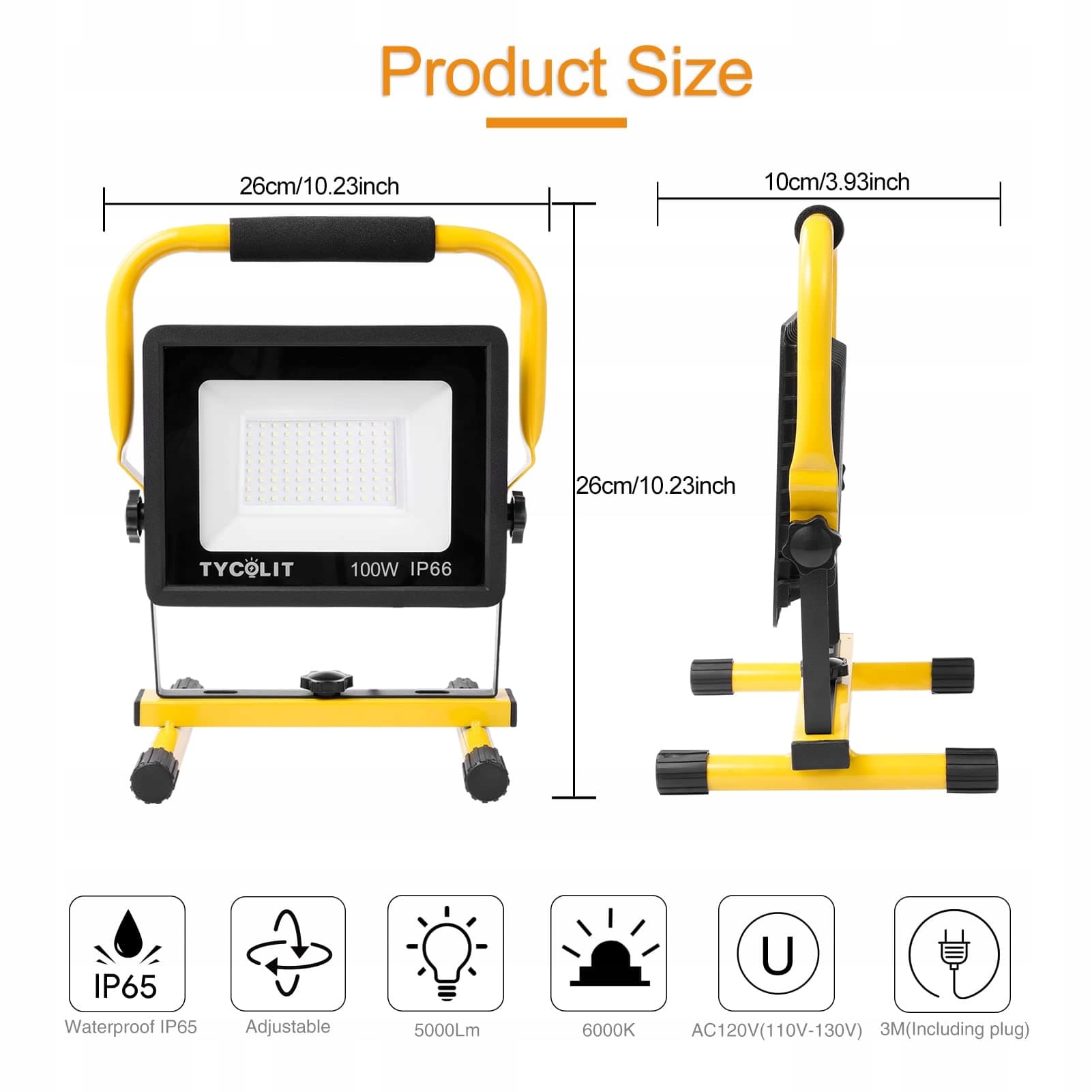 Reflektor LED do budowy, 100W 10000LM lampa robocza, 6500K zimnobiałe światło lampy budowlanej z wtyczką, IP66 wodoodporny reflektor LED, 3M kabel lampy budowlanej reflektor roboczy do warsztatu, budowy, garażu