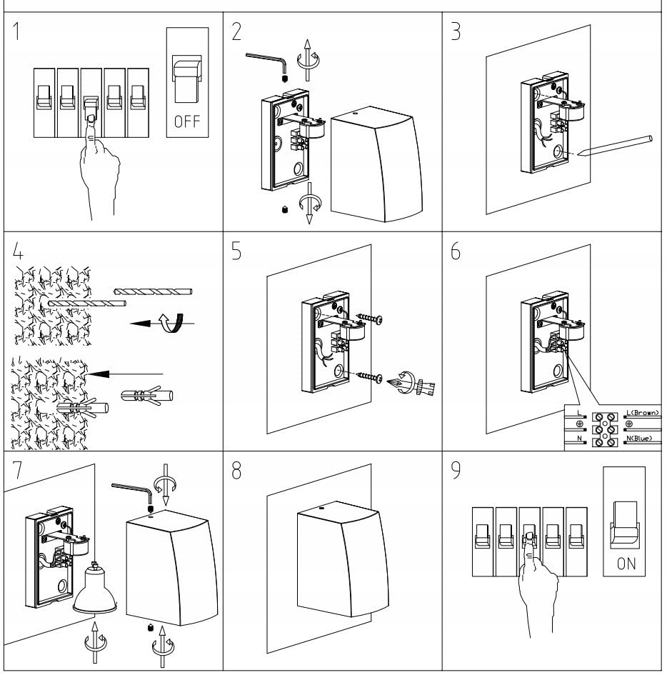 możliwość użycia jako lampa UP lub Down wymiary: 70 x 85 x 110mm