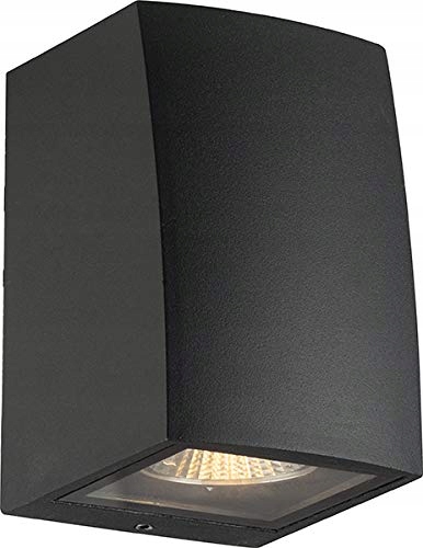 LED24.cc GU10 Designowa lampa ścienna Up lub Down zewnętrzna, czarne aluminium, antracyt, do lamp LED lub halogenowych, lampa ścienna zewnętrzna, IP54, pojedynczy strumień światła