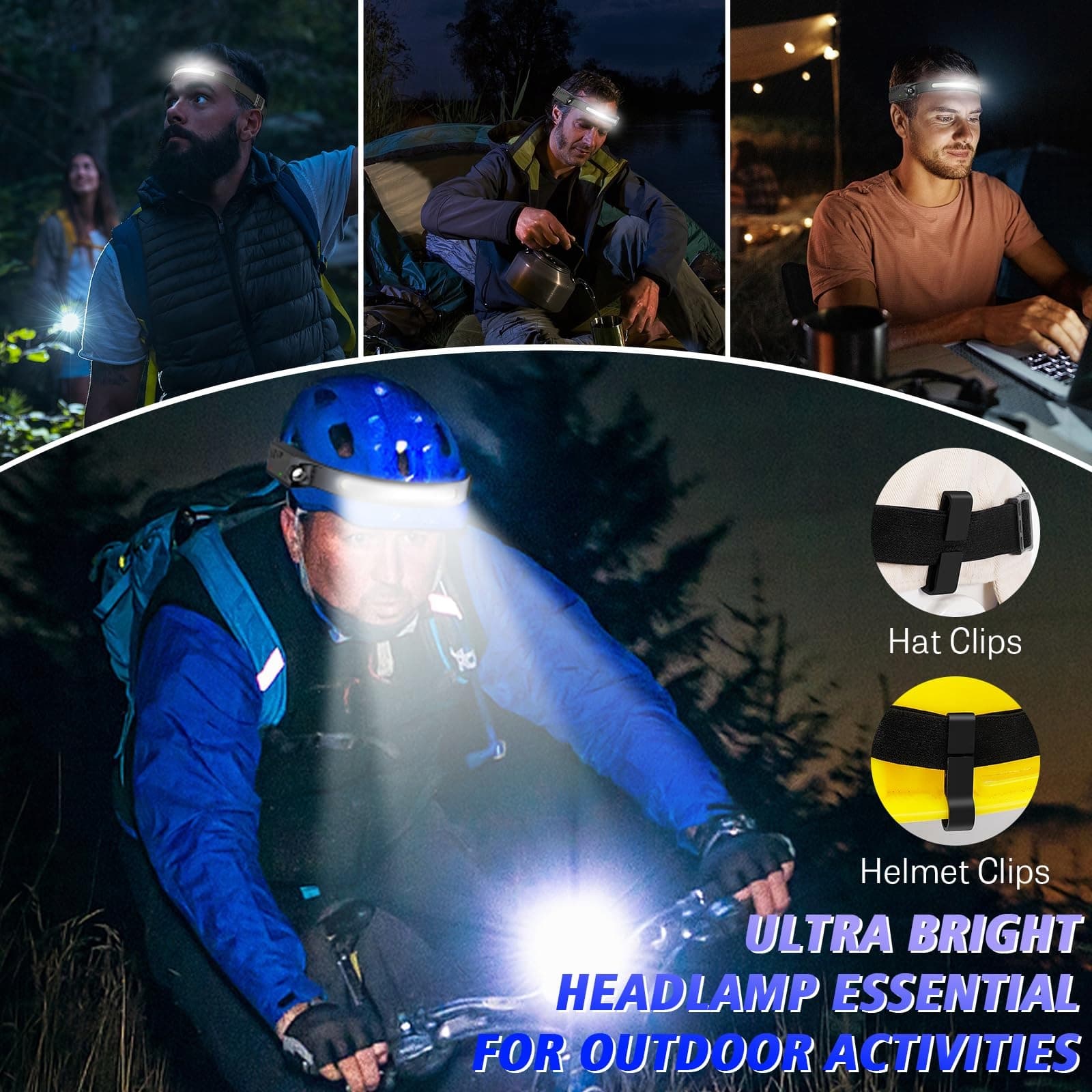 USB WIELOKROTNEGO ŁADOWANIA i REGULOWANY PASEK NA GŁOWĘ: Ta czołówka LED jest wyposażona w akumulatory o dużej pojemności. Czołówka wykonana jest z ABS i silikonu, waży tylko 3,5 uncji. Można ją składać bez wpływu na użytkowanie. Ta wodoodporna czołówka ma wysuwany i wygodny pasek na głowę. Możesz łatwo dostosować rozmiar, aby spełnić różne potrzeby