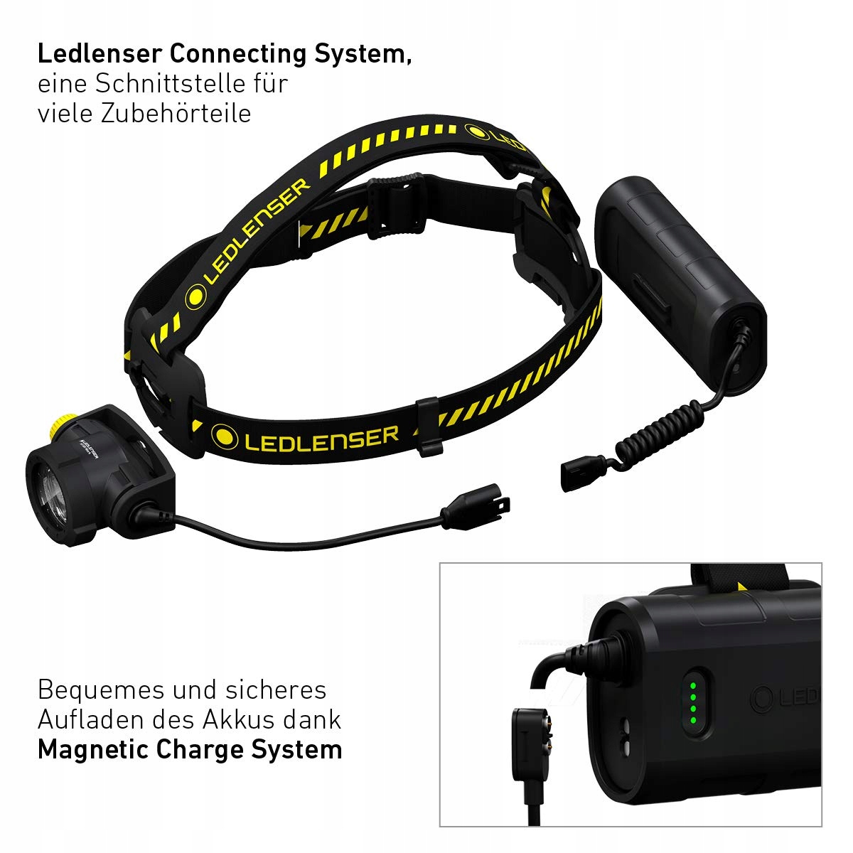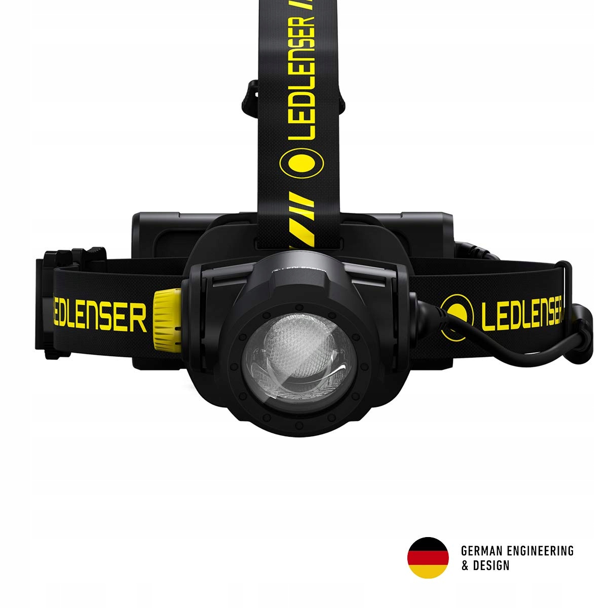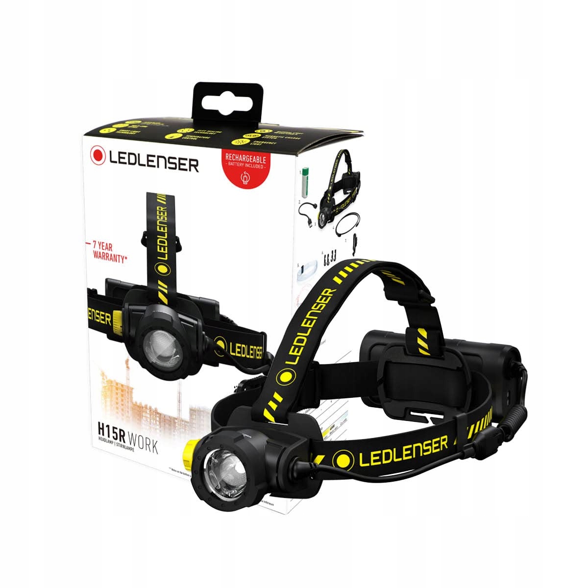 Latarka czołowa Ledlenser H15R Work, wytrzymała, ładowalna z akumulatorem litowym, wodoodporna IP67, 2500 lumenów, wysoki CRI, możliwość ogniskowania, płynna regulacja jasności, zasięg świecenia 250m, z klipsami do kasku, kabel magnetyczny USB