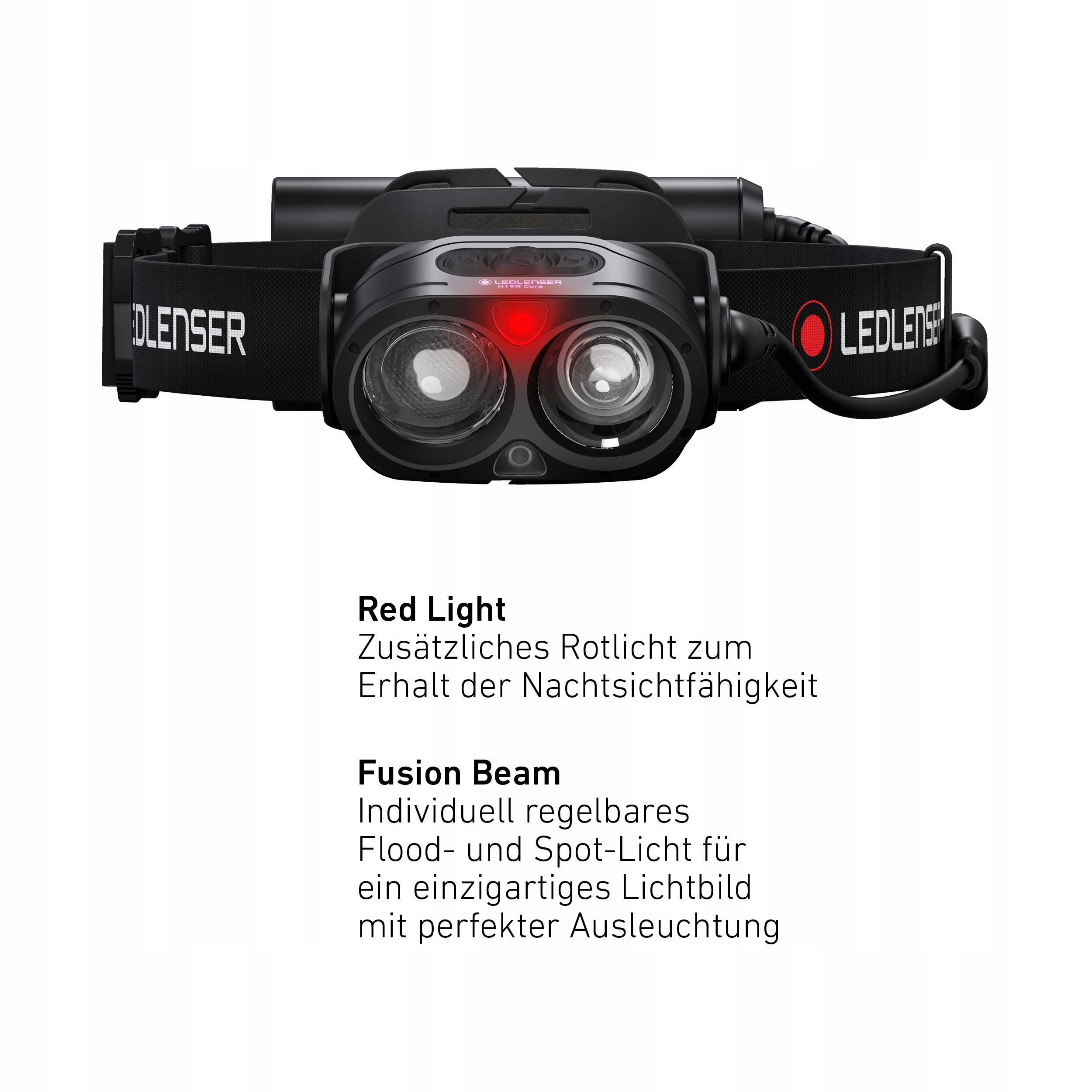 Wydajna premium czołówka H19R Core: Dzięki do 3500 lumenów ta innowacyjna latarka LED zapewnia doskonałe oświetlenie dzięki Fusion Beam – idealna na przygody na świeżym powietrzu i profesjonalne zastosowania. Intuicyjna obsługa trzema trybami.
