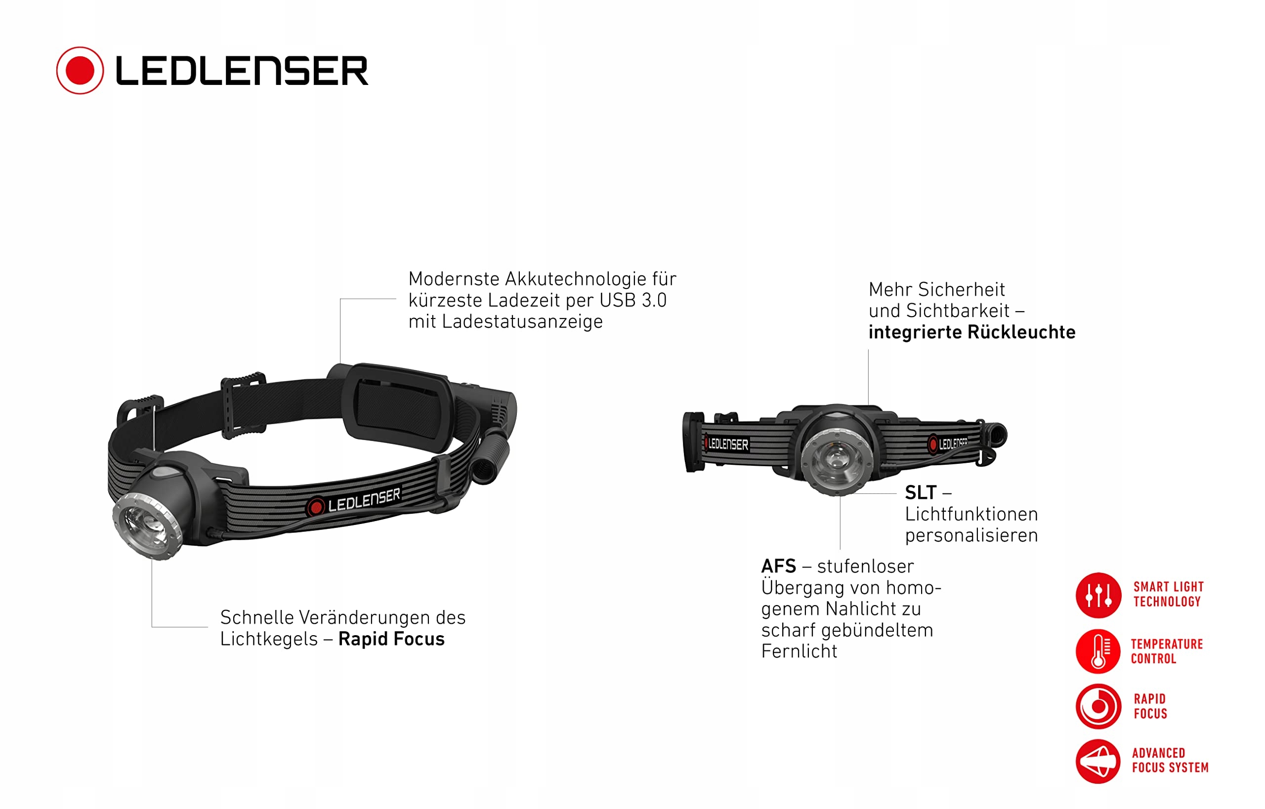 Ledlenser H8R SE LED Czołówka | Lampa na głowę 700 Lumenów, ładowalna | Latarka z zasięgiem 170 metrów, regulowana | 70 godzin czasu świecenia | Zestaw czołówek z akumulatorem, torbą na pasek i kablem USB